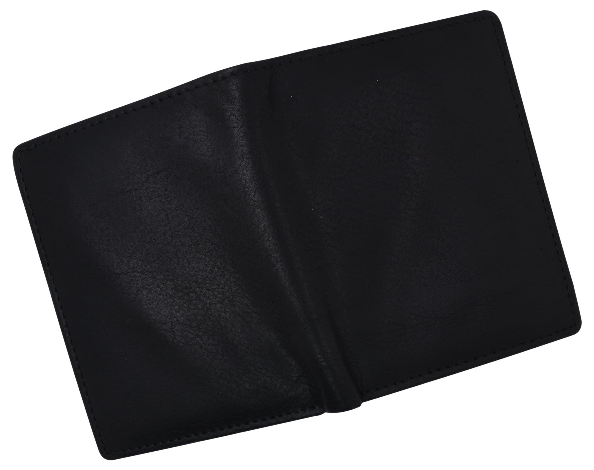 Bifold Badge Holder Wallet RFID Protected Black Full Grain Genuine Leather 4.75" H x 3.5" W, Fits Any Shape Badge with a Pin Back, Smart Designer Wallet for Law Enforcement: