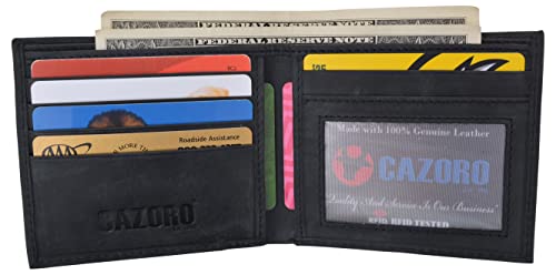 Real Leather Mens Bifold USA Wallet RFID Blocking Slim Minimalist Front Pocket ID Window US Design