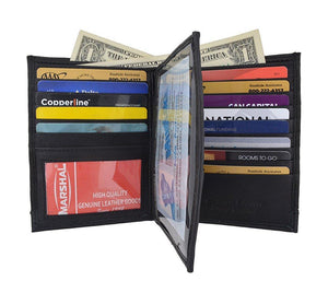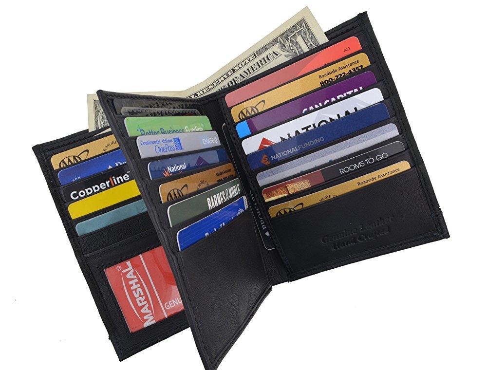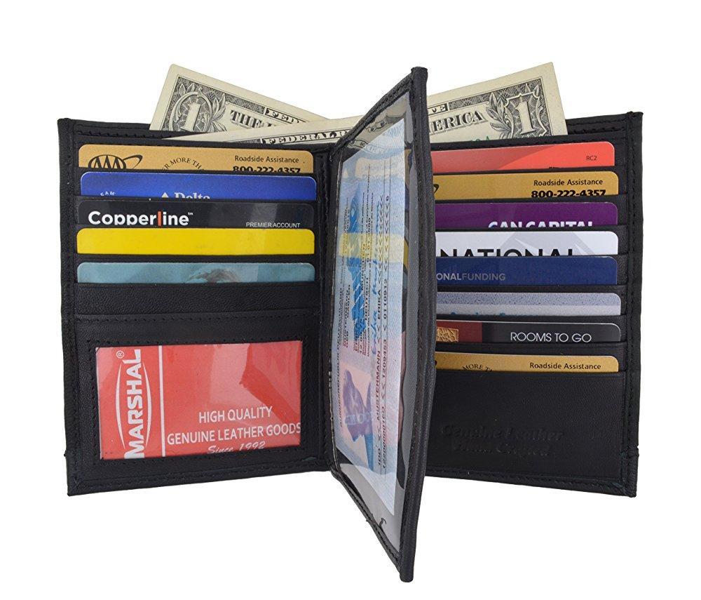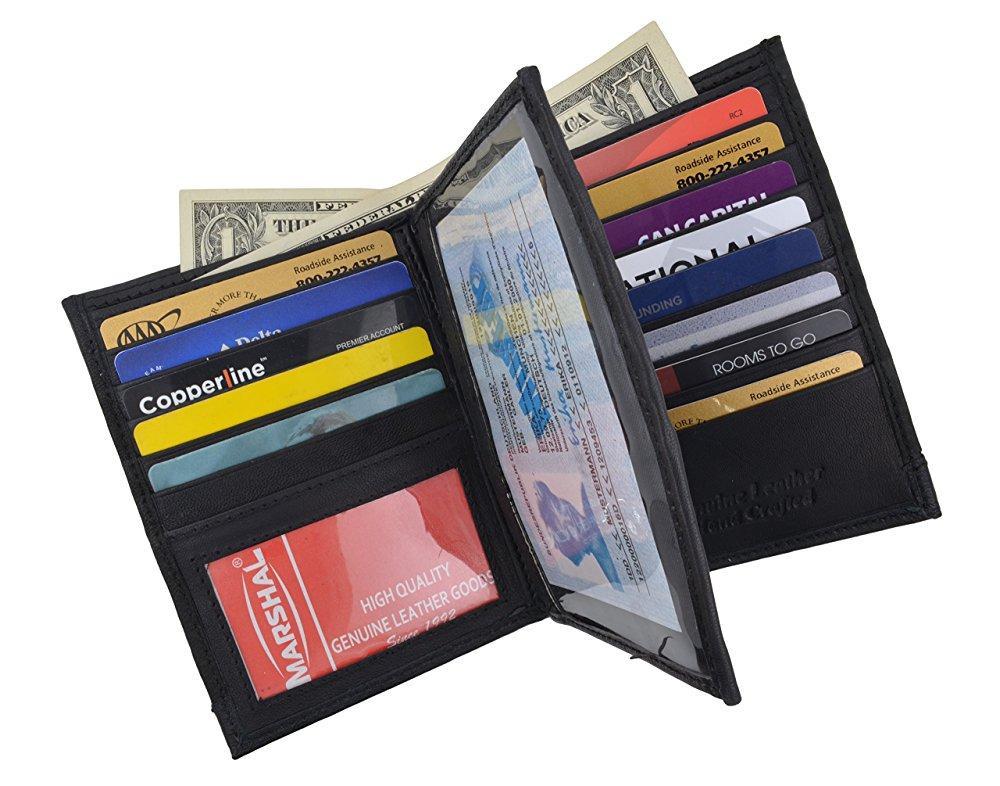 - MORE SLOTS MORE CONVENIENCE: Hold one of our Marshal hipster wallet in your hands today, open it and discover its many slots and compartments. 12 slots for your credit or debit cards, your shopping cards, or gift shopping cards. 2 large bill compartments that will carry your money safely and 1 ID window. Place your ID or driver’s license.