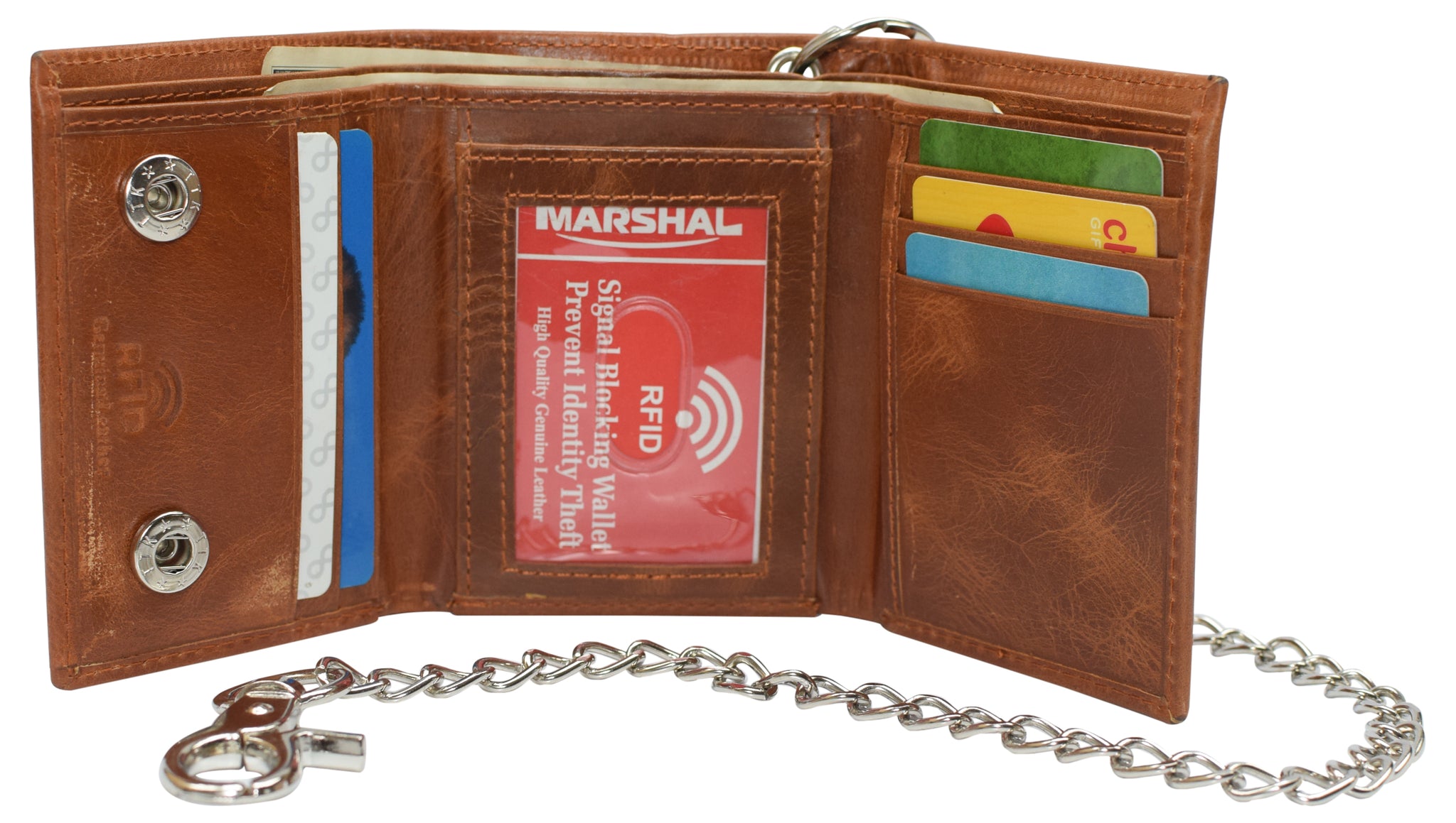 Category: biker wallet, Chain wallet, Genuine Leather, Mens wallet, RFID, trifold wallet