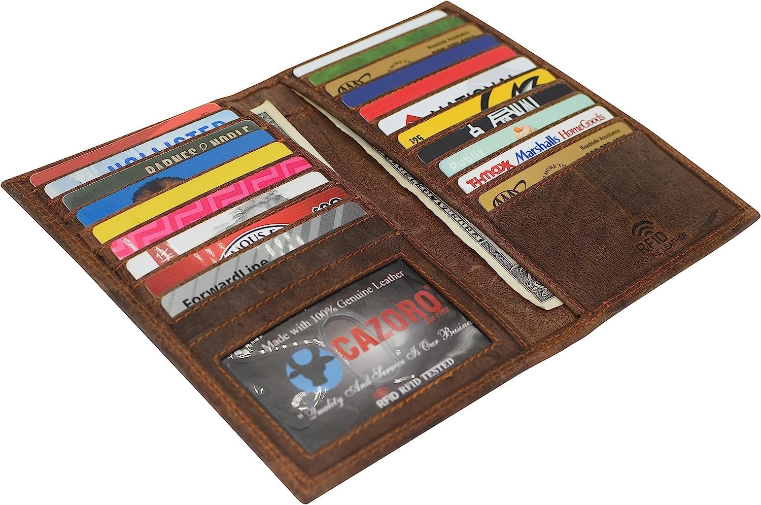 RFID Blocking Premium Vintage Leather Long Bifold Credit Card ID Wallet