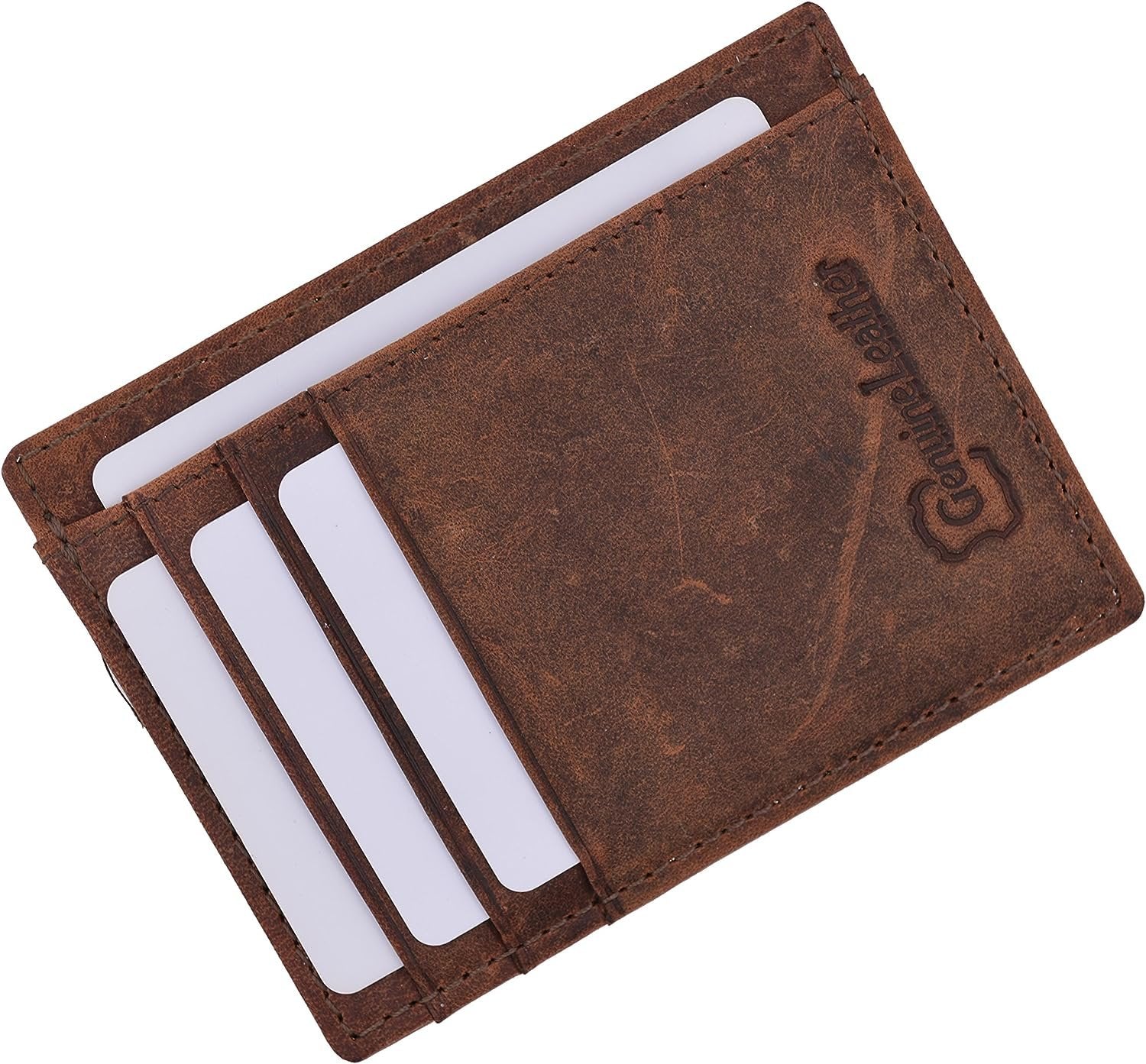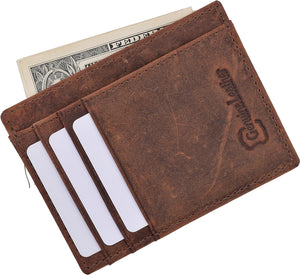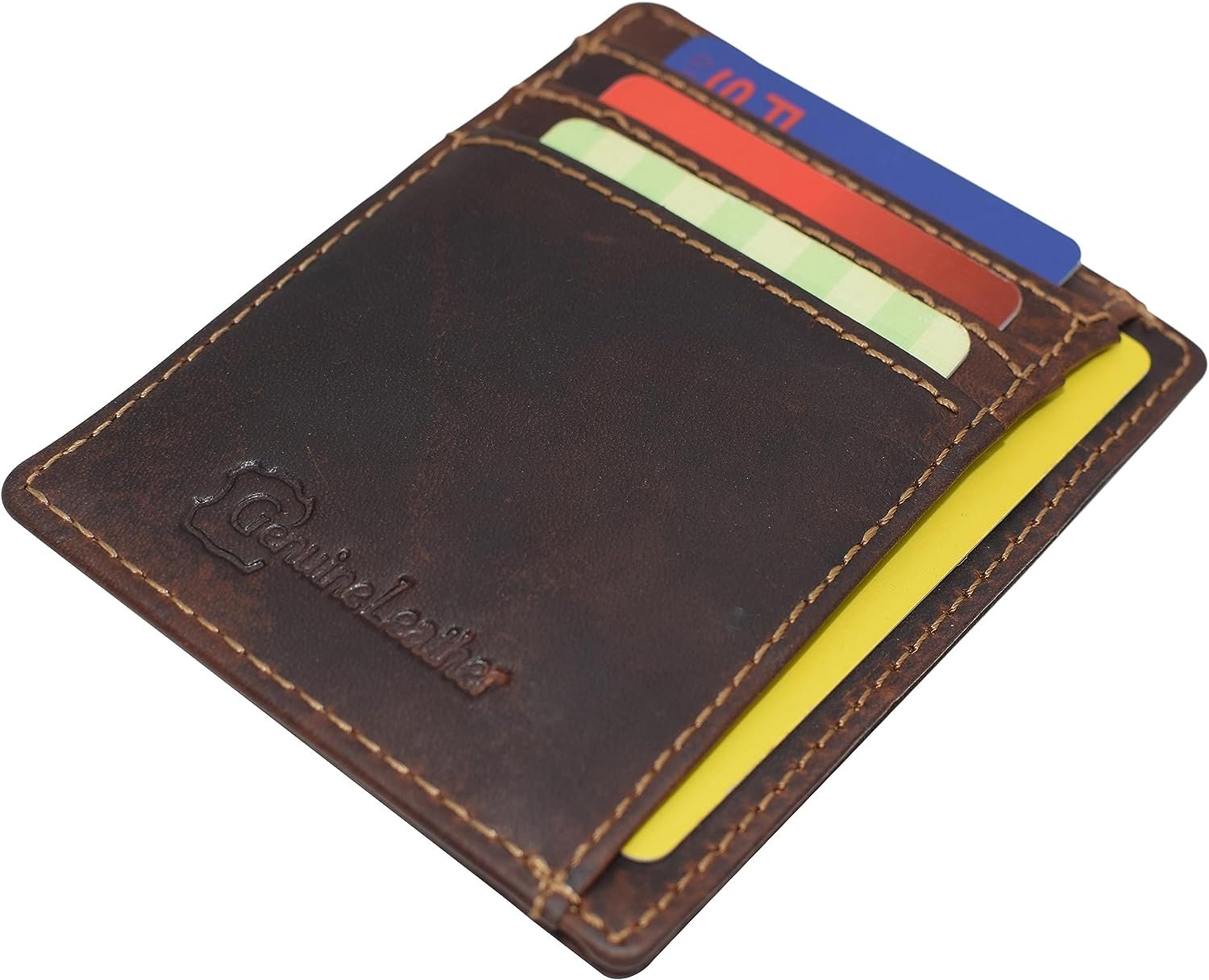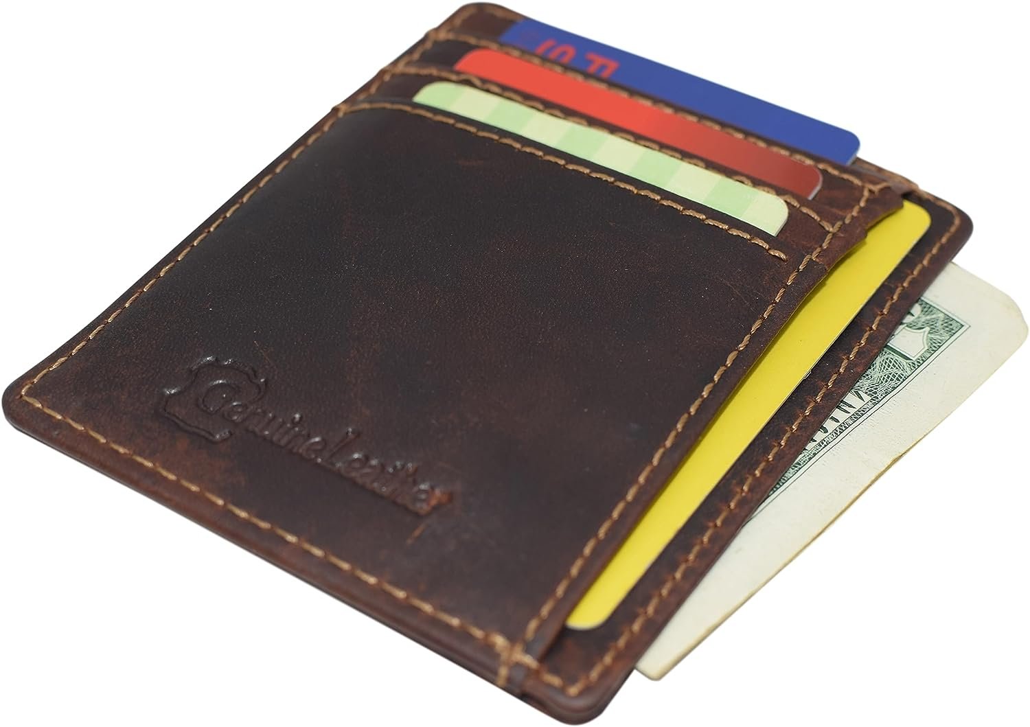 AirTag Holder Wallet RFID Vintage Leather Slim Minimalist Card Holder Compatible with AirTag