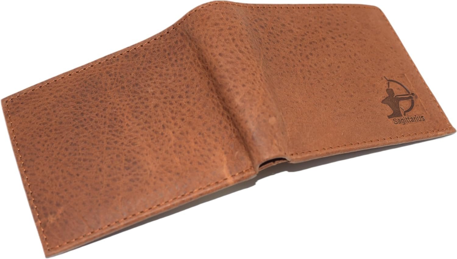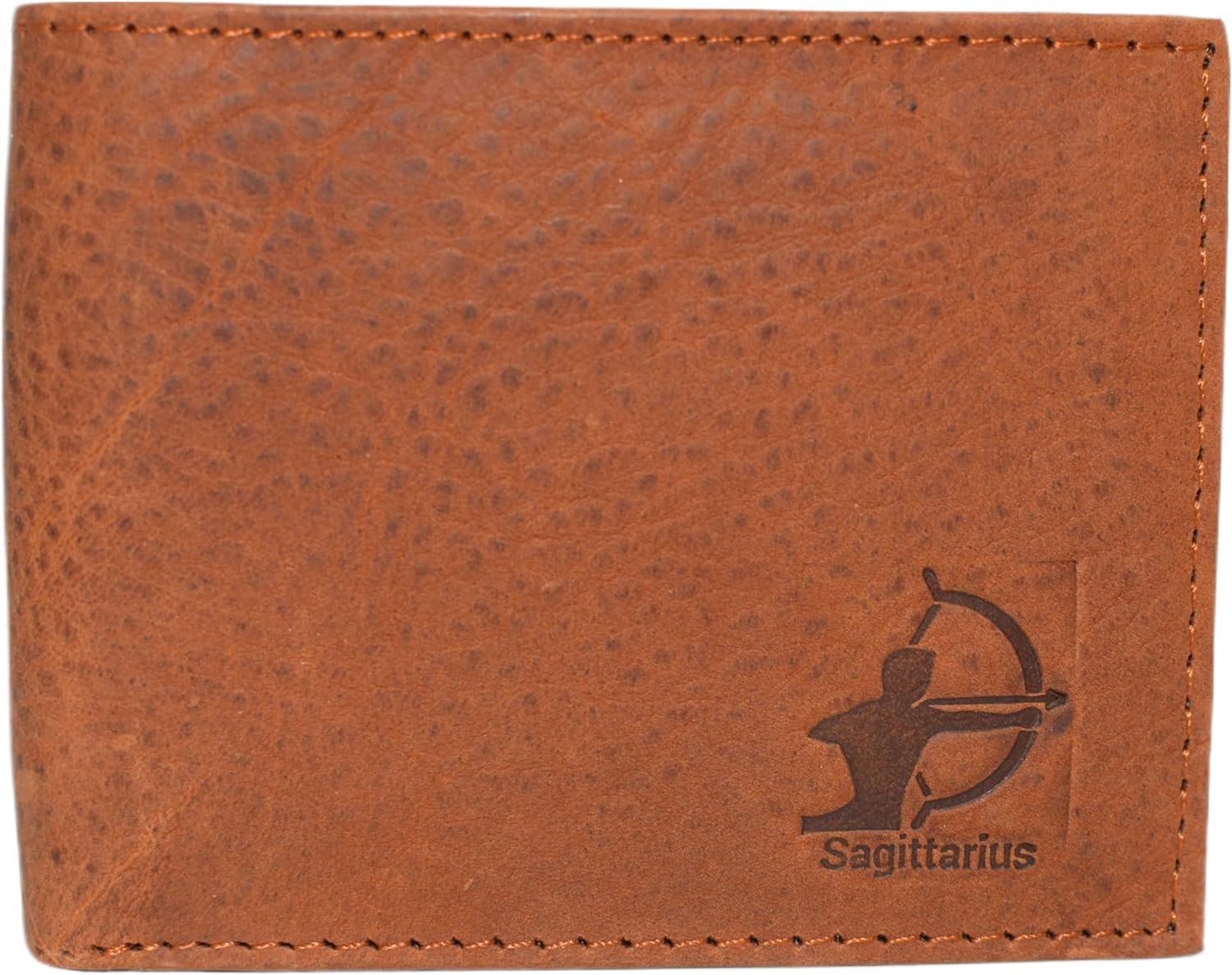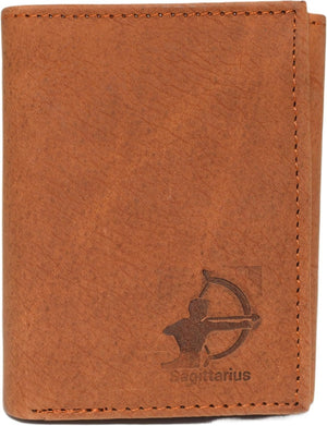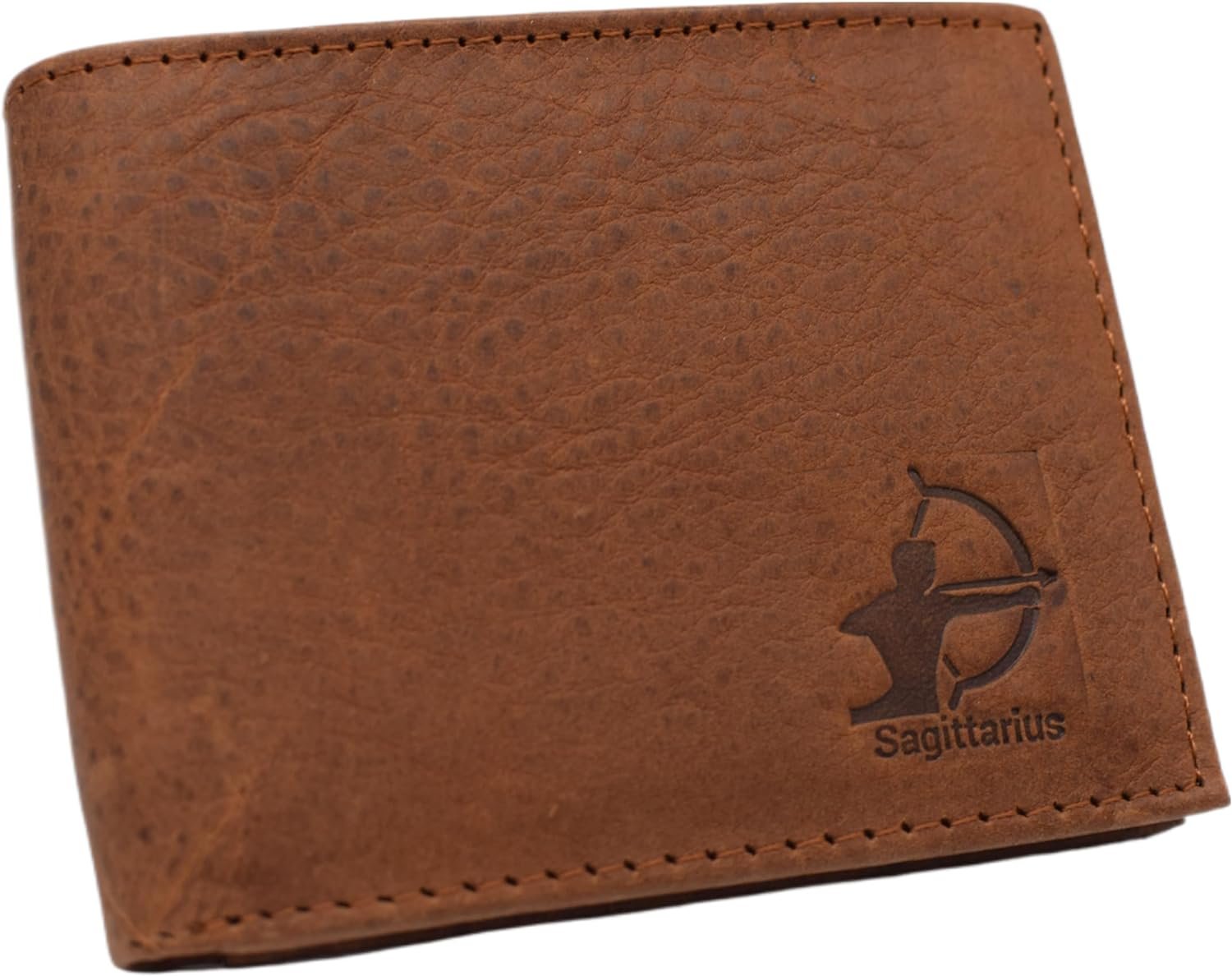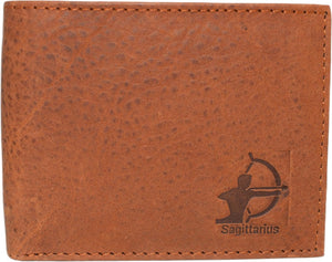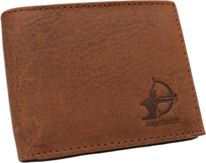 Sagittarius RFID Blocking Men's Real Leather Bifold Trifold Zodiac Sign Logo Wallet