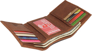 • TRIFOLD ALL-IN-1 ORGANIZER - This wallet is all about practicality and safety. It has 8 credit card slots, 2 ID window (1 outside), 2 compartment for cash, and an RFID blocking lining for security.