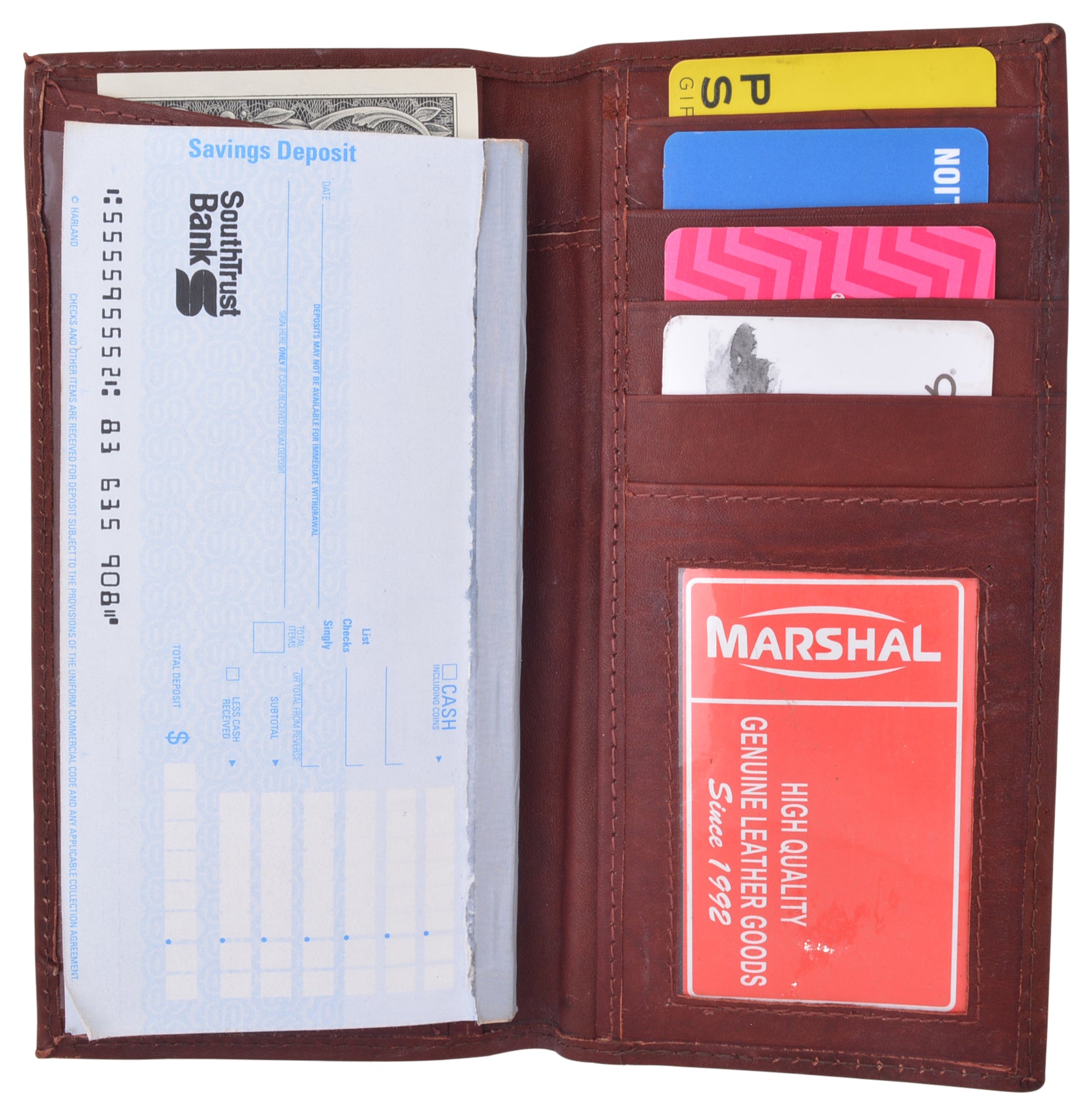 Material: Genuine LeatherCredit Card Slots: 7+ID Window: YesOther Features: Zippered Pocket, Checkbook HolderMeasures:6.8" X 3.65"...