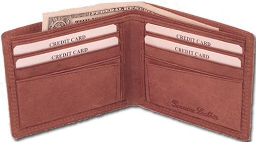 Material: Genuine Leather Tri-fold Credit Card Slots: 8+ I.D. Window: Yes Currency Pocket: Divider; Hideaway...
