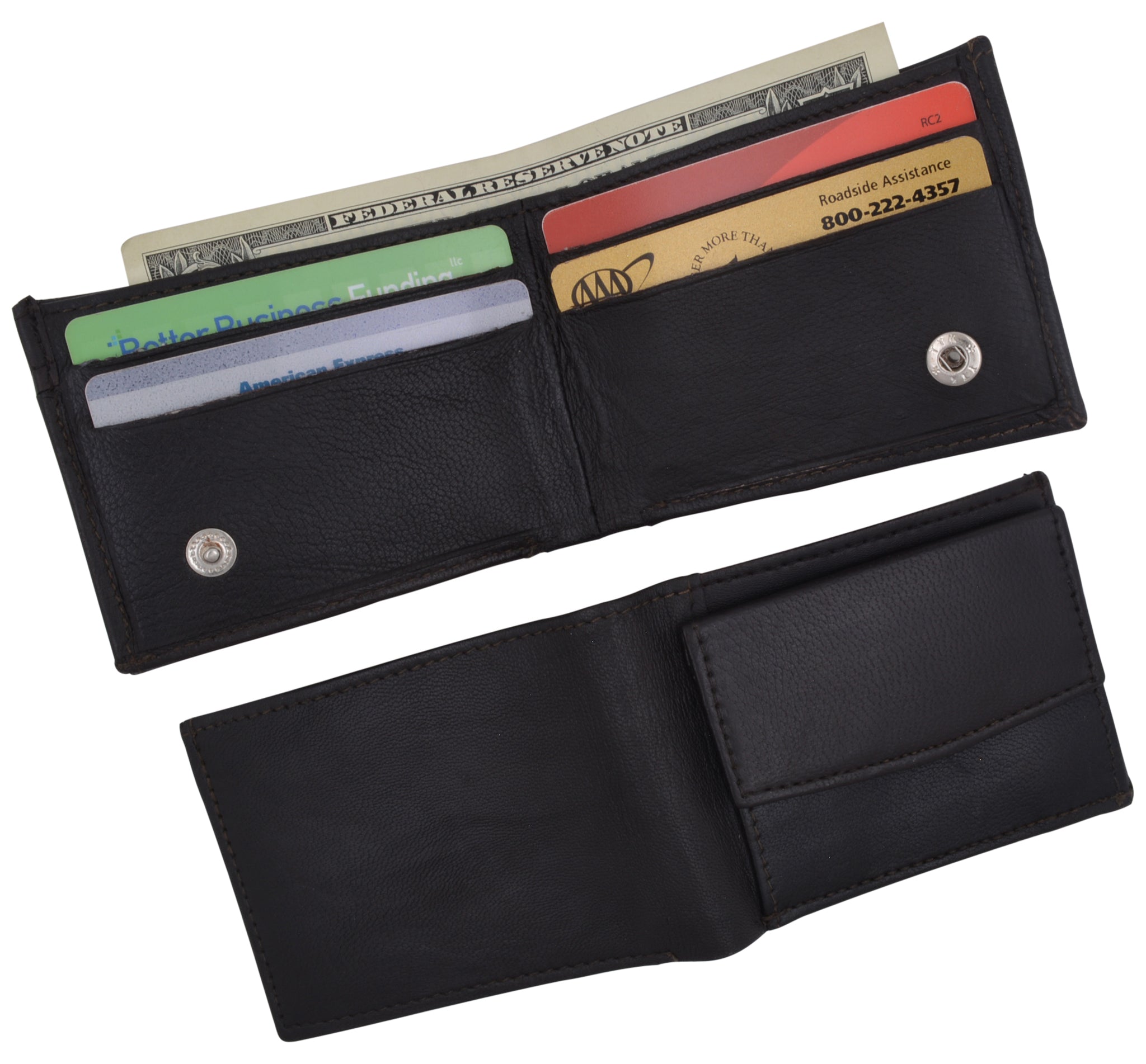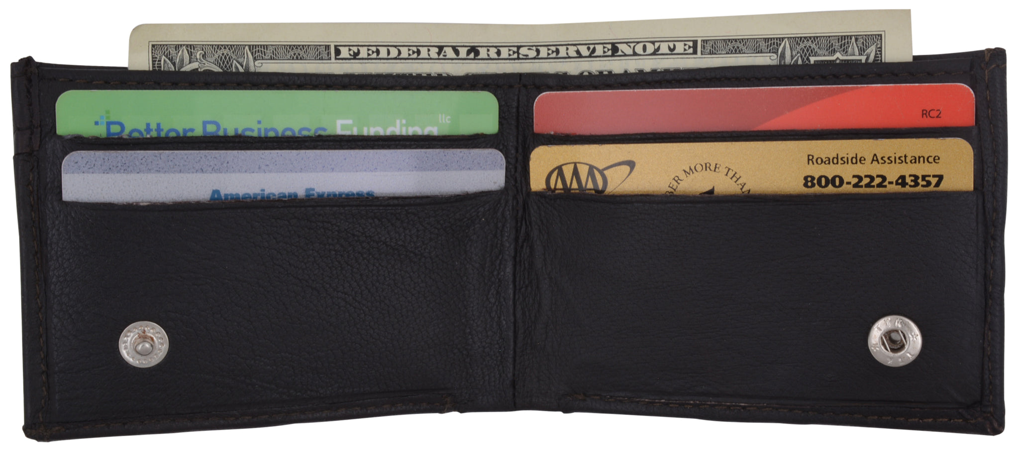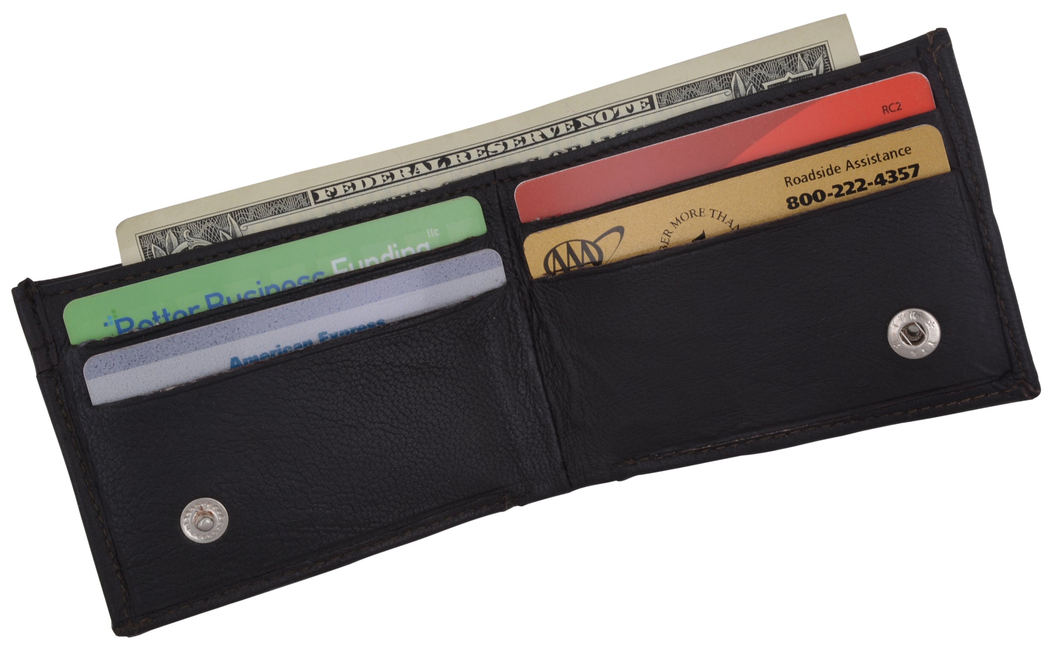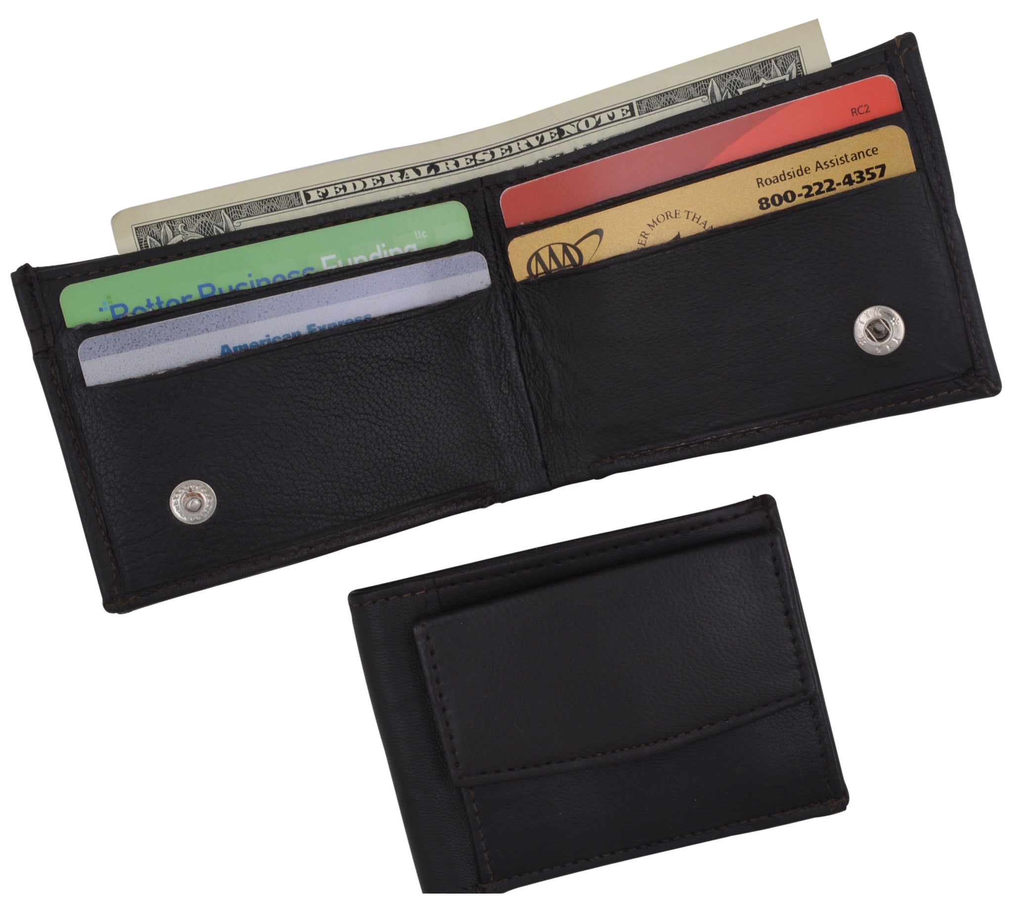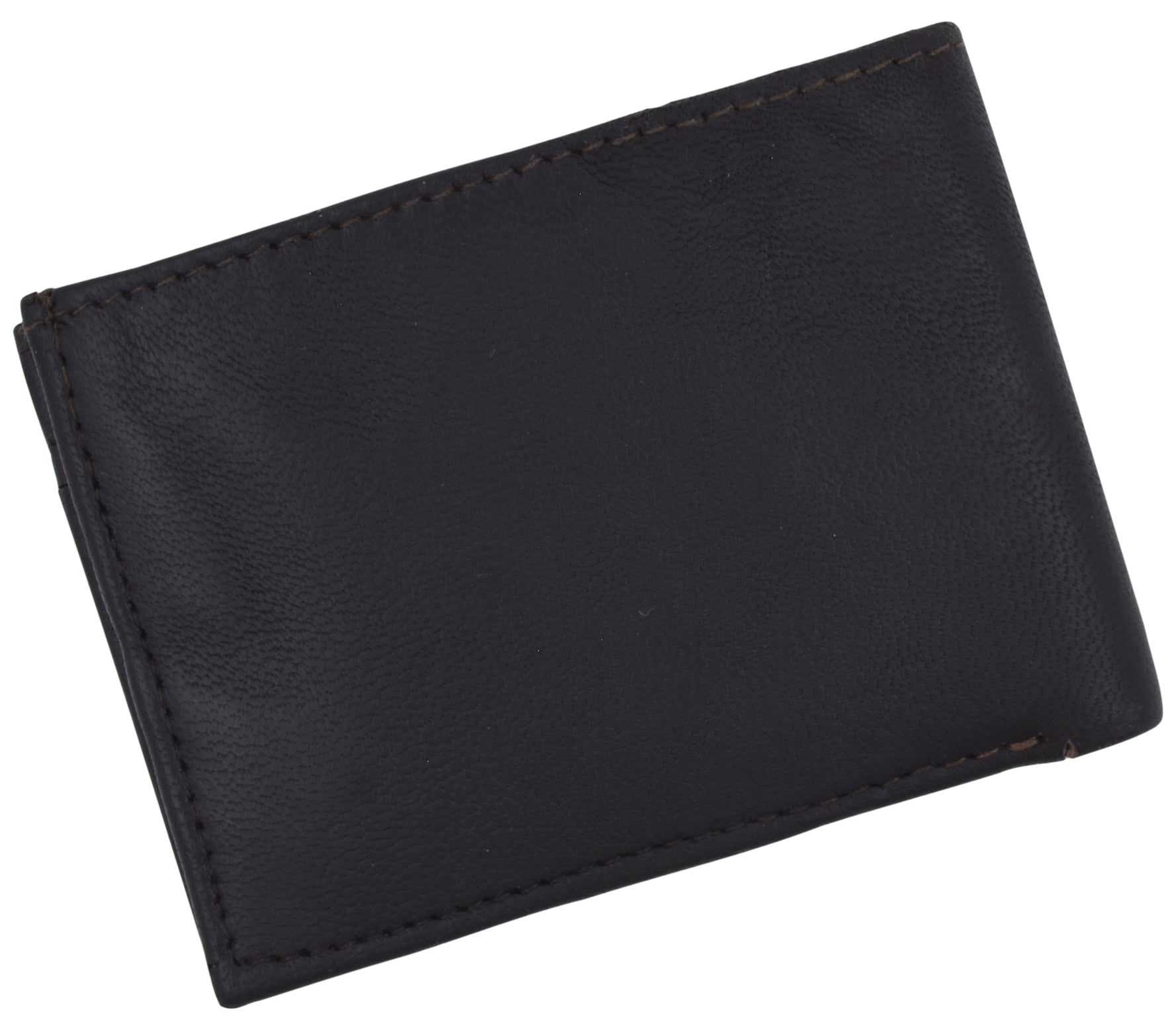 Men's wallet, crafted of fine lamb skin leather, features 6 credit cards slots, a Id...