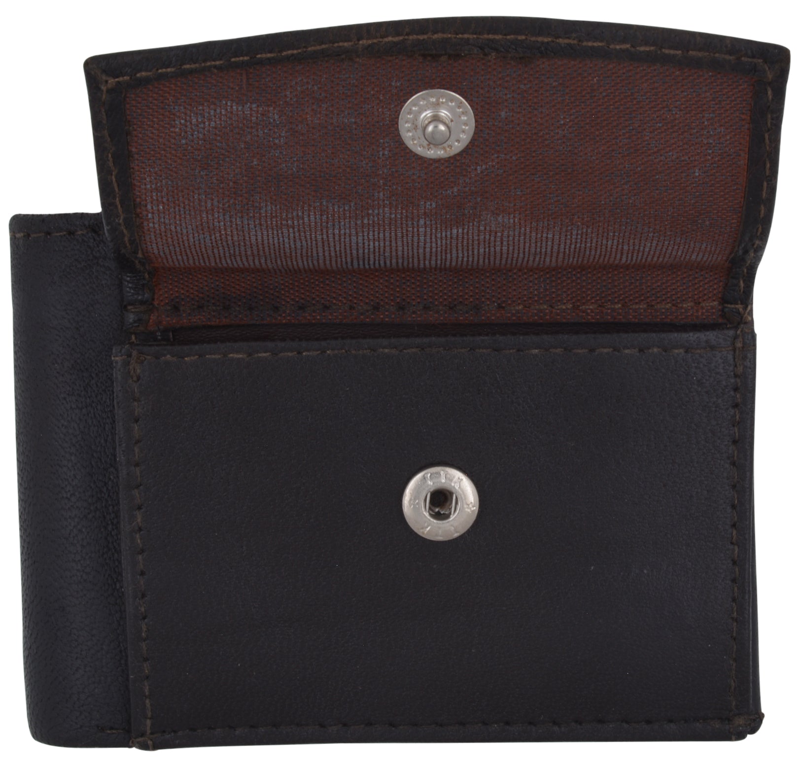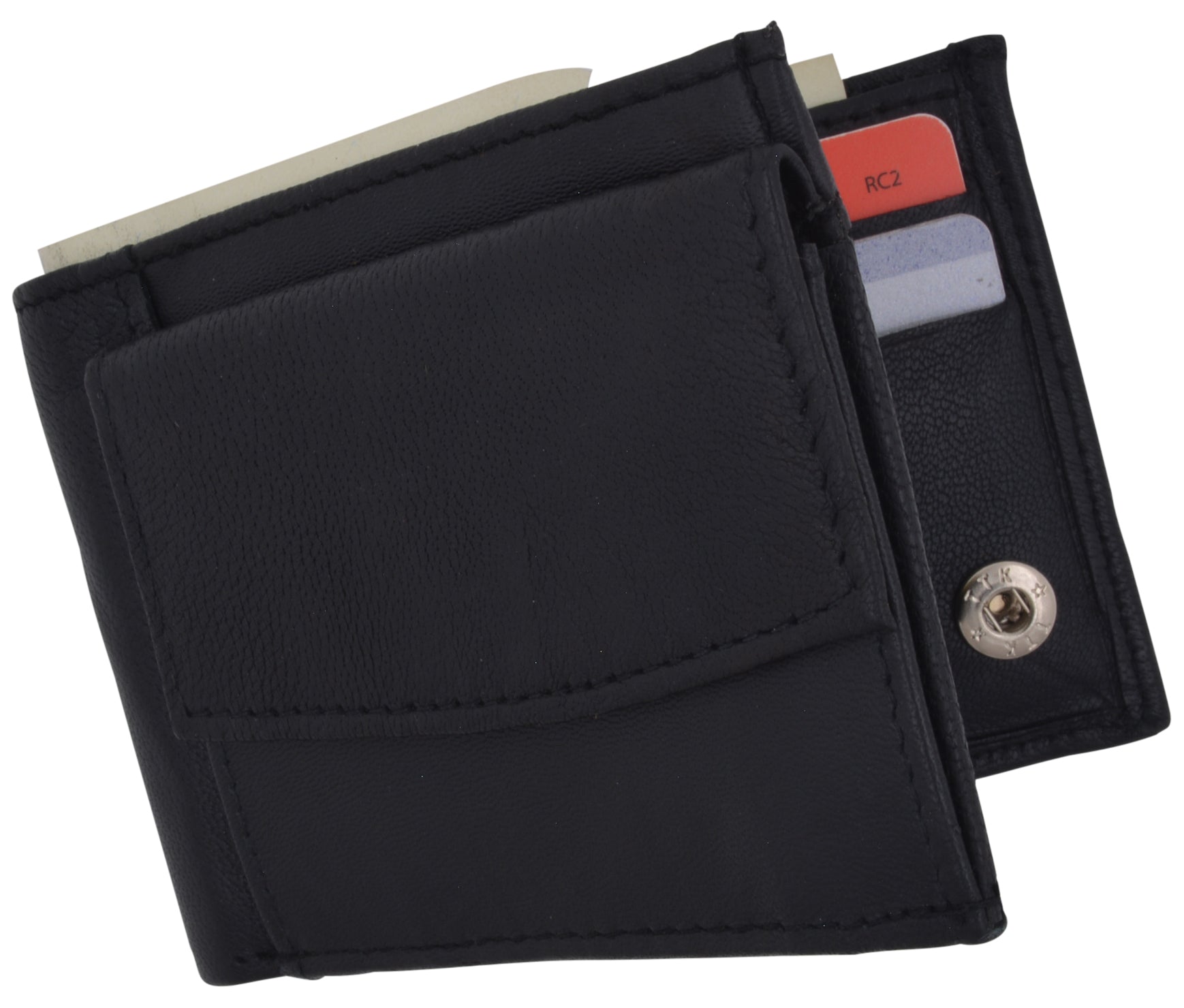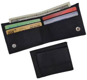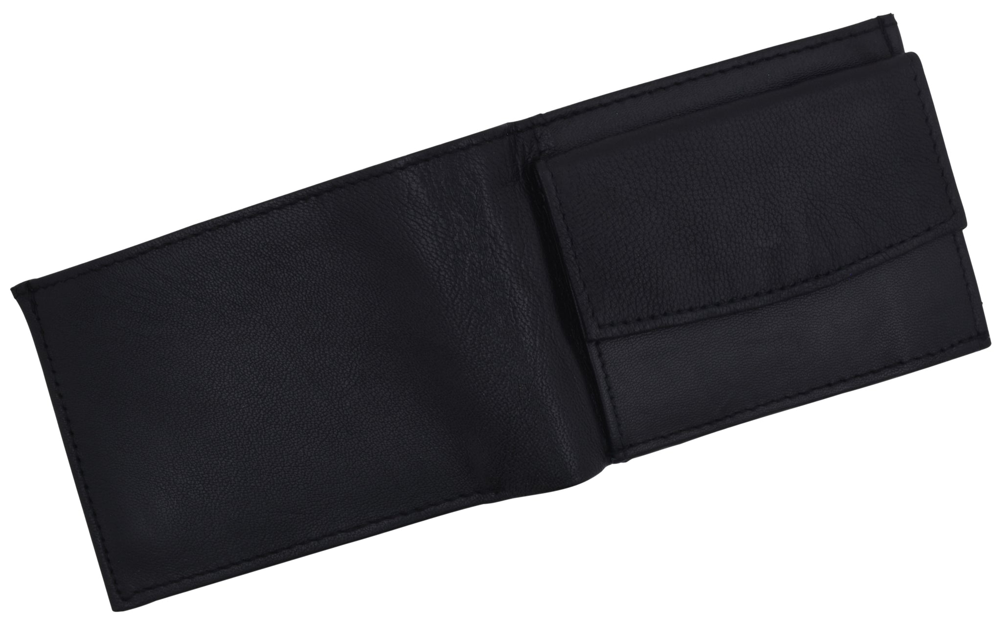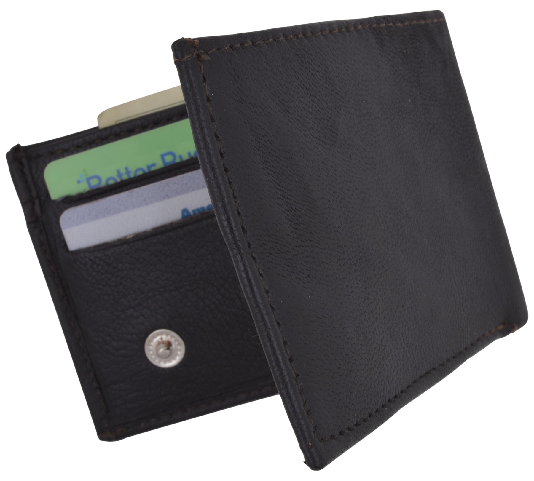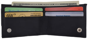 Men's wallet, crafted of fine lamb skin leather, features 6 credit cards slots, a Id...