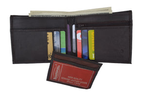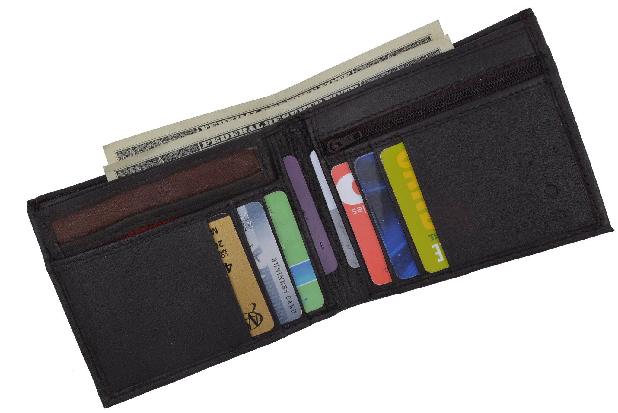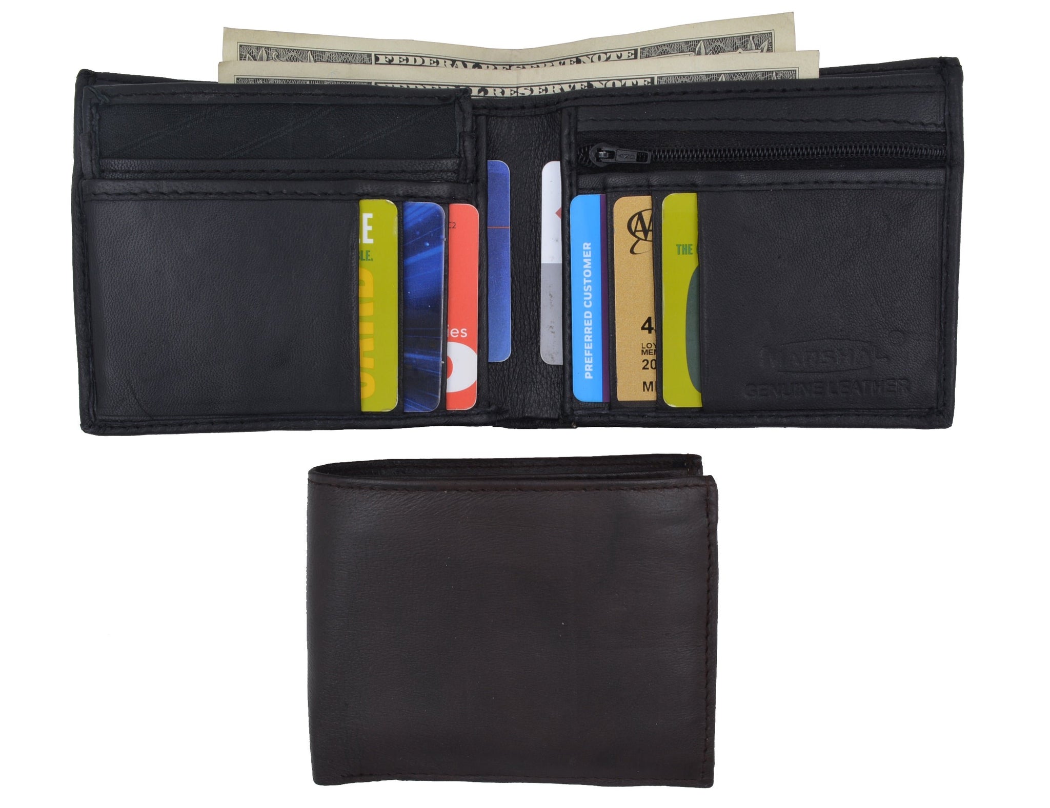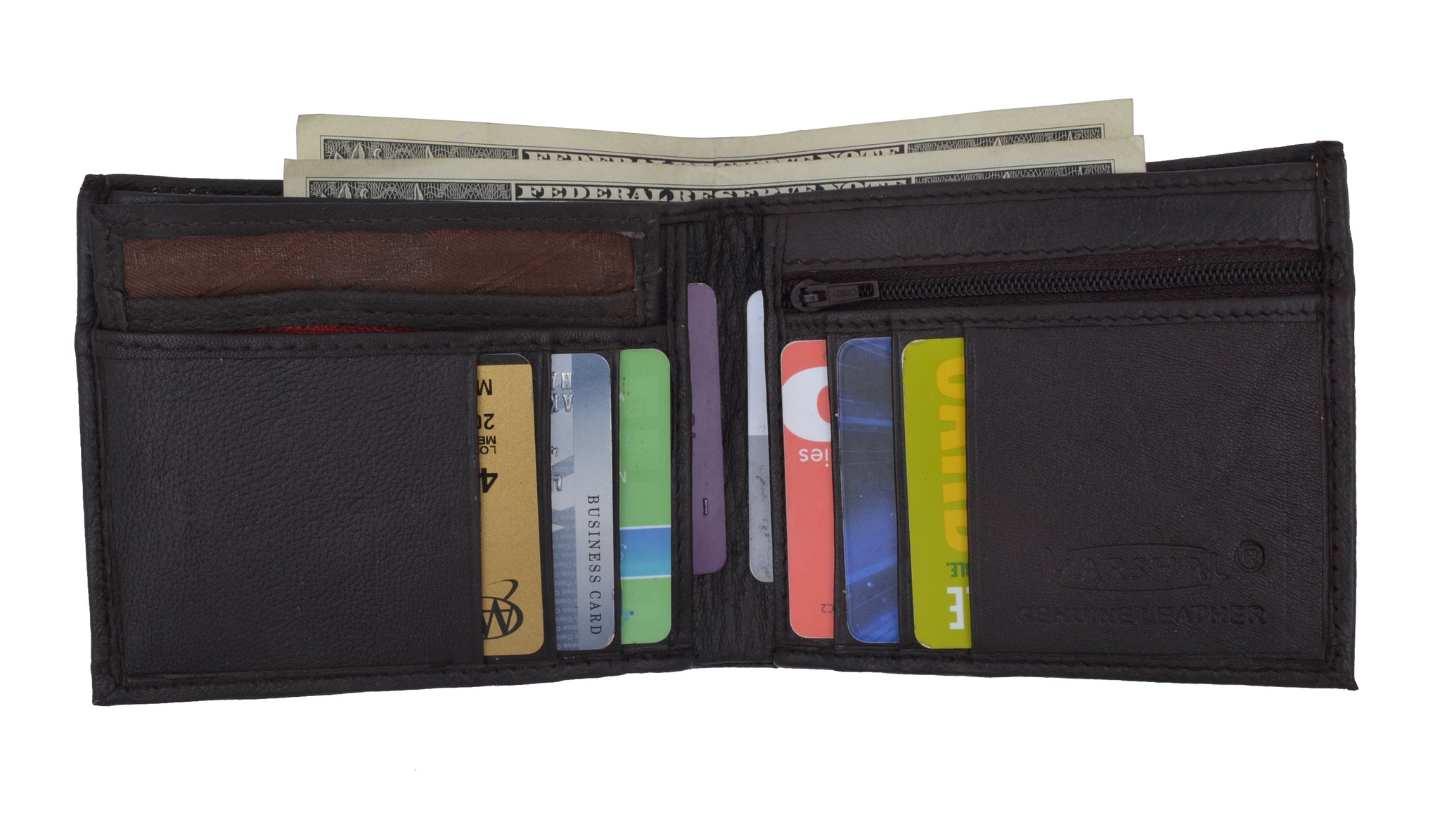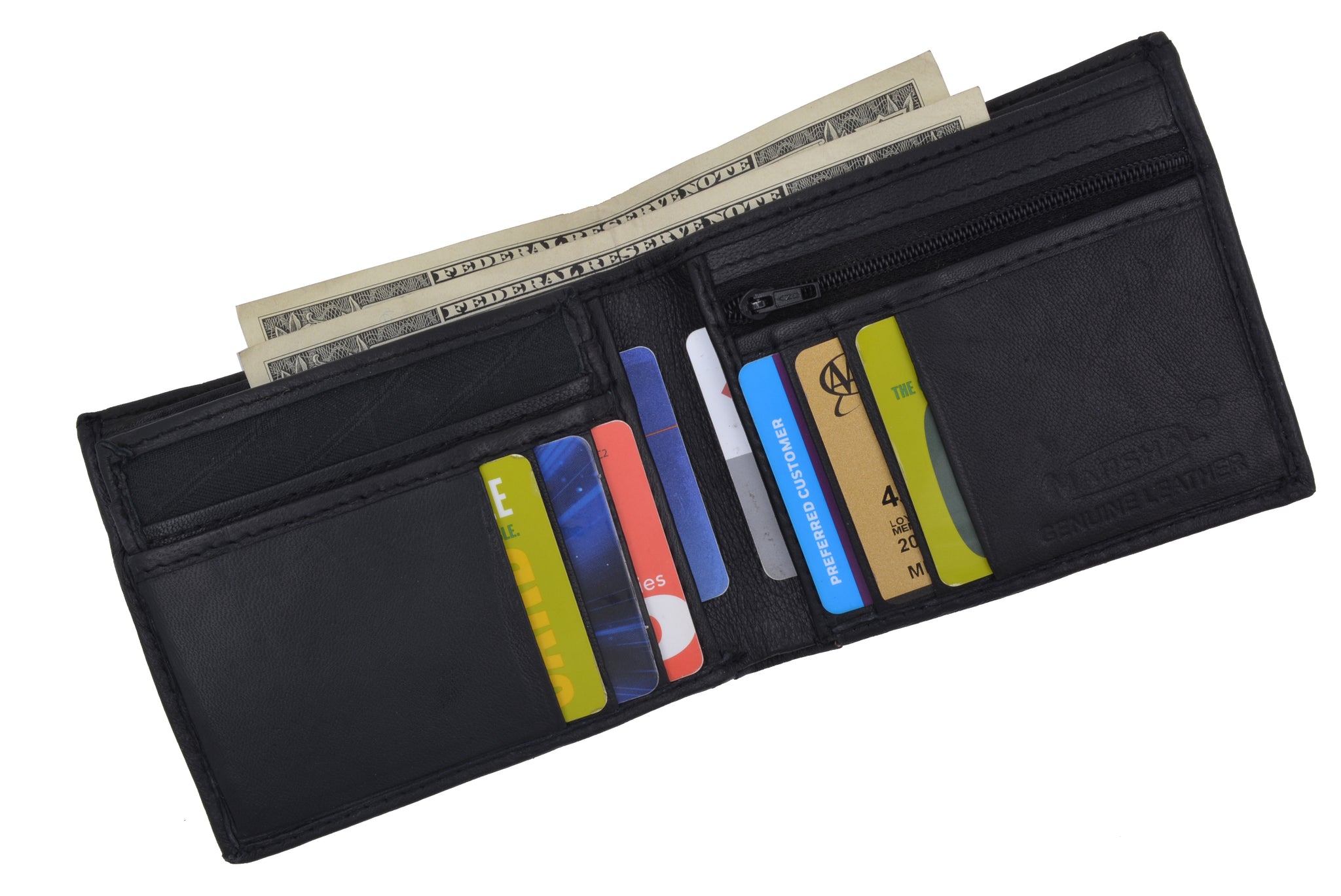 Men's genuine leather bi-fold wallet 9 credit card slots, currency compartment with a divider and a...