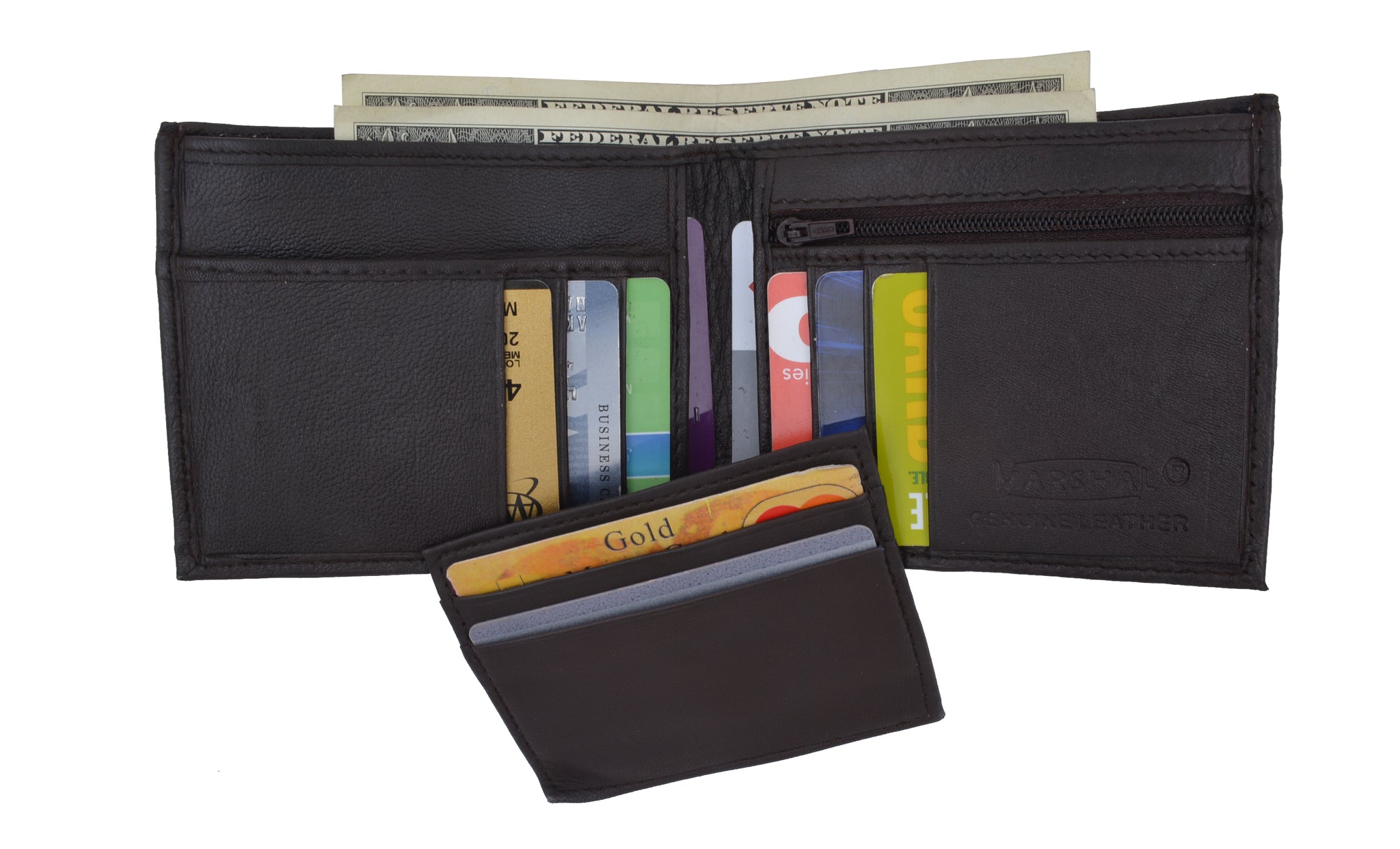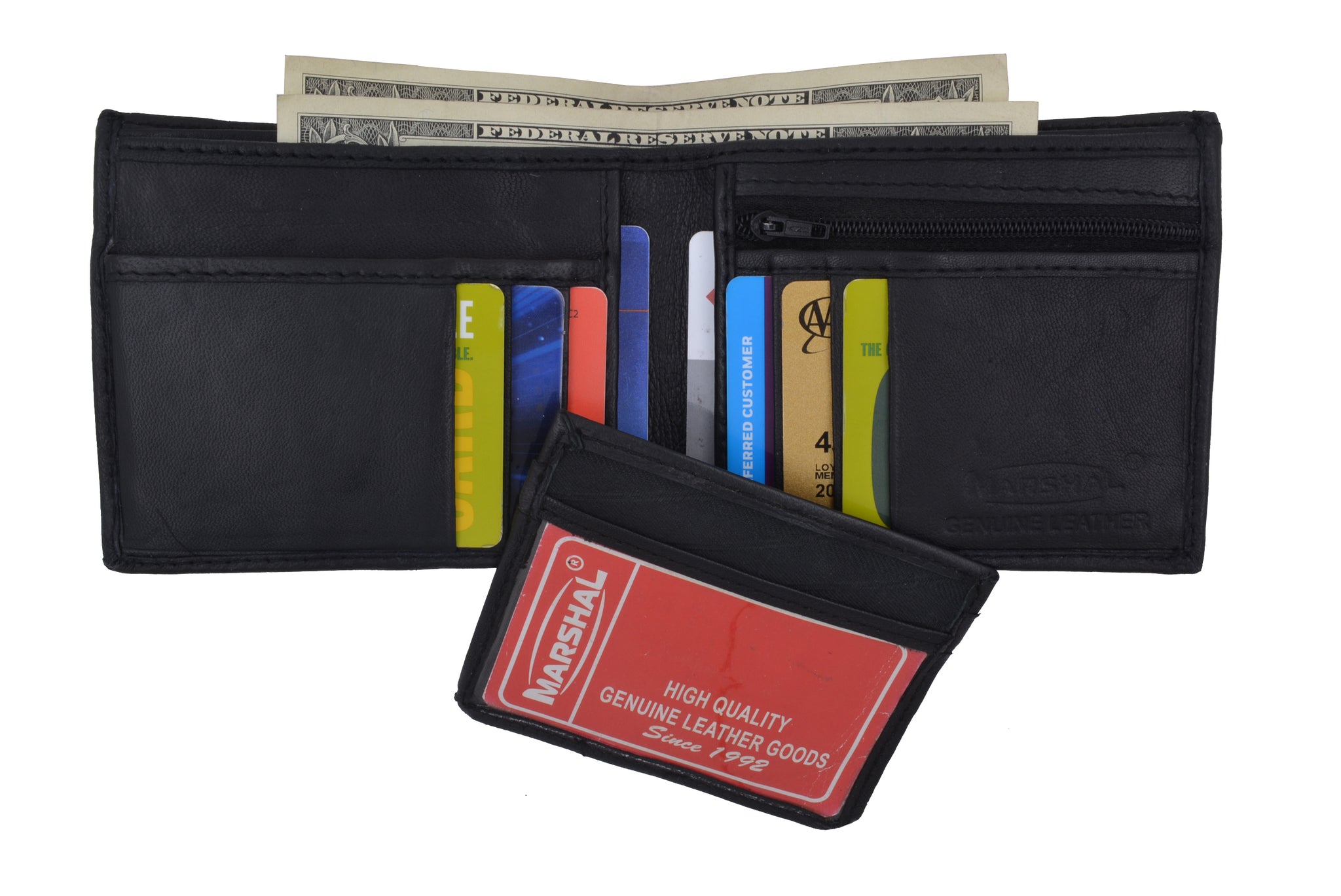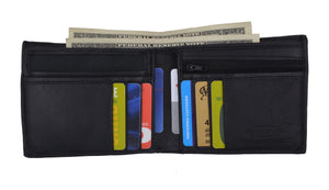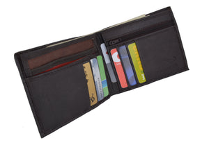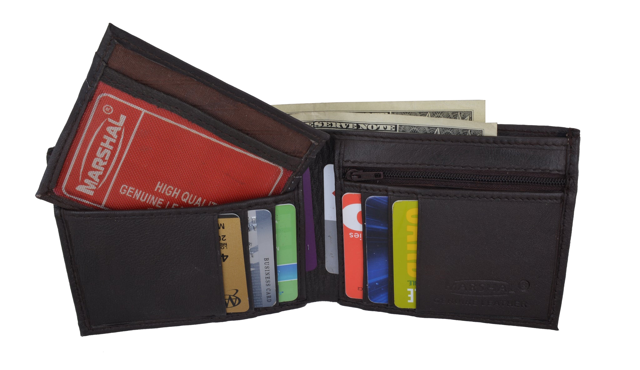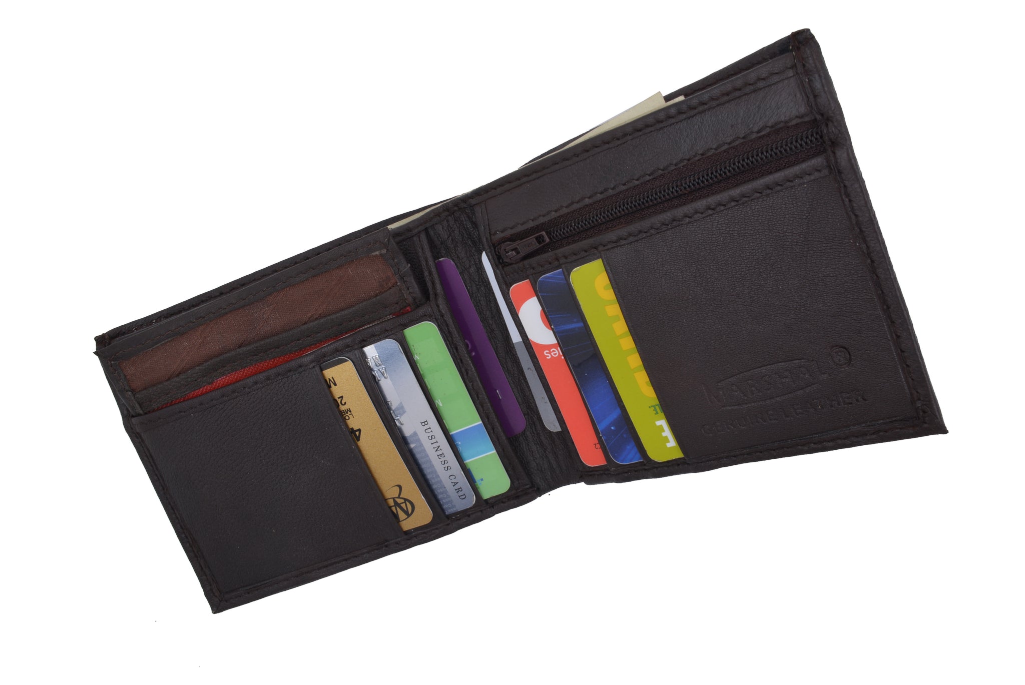 Men's genuine leather bi-fold wallet 9 credit card slots, currency compartment with a divider and a...