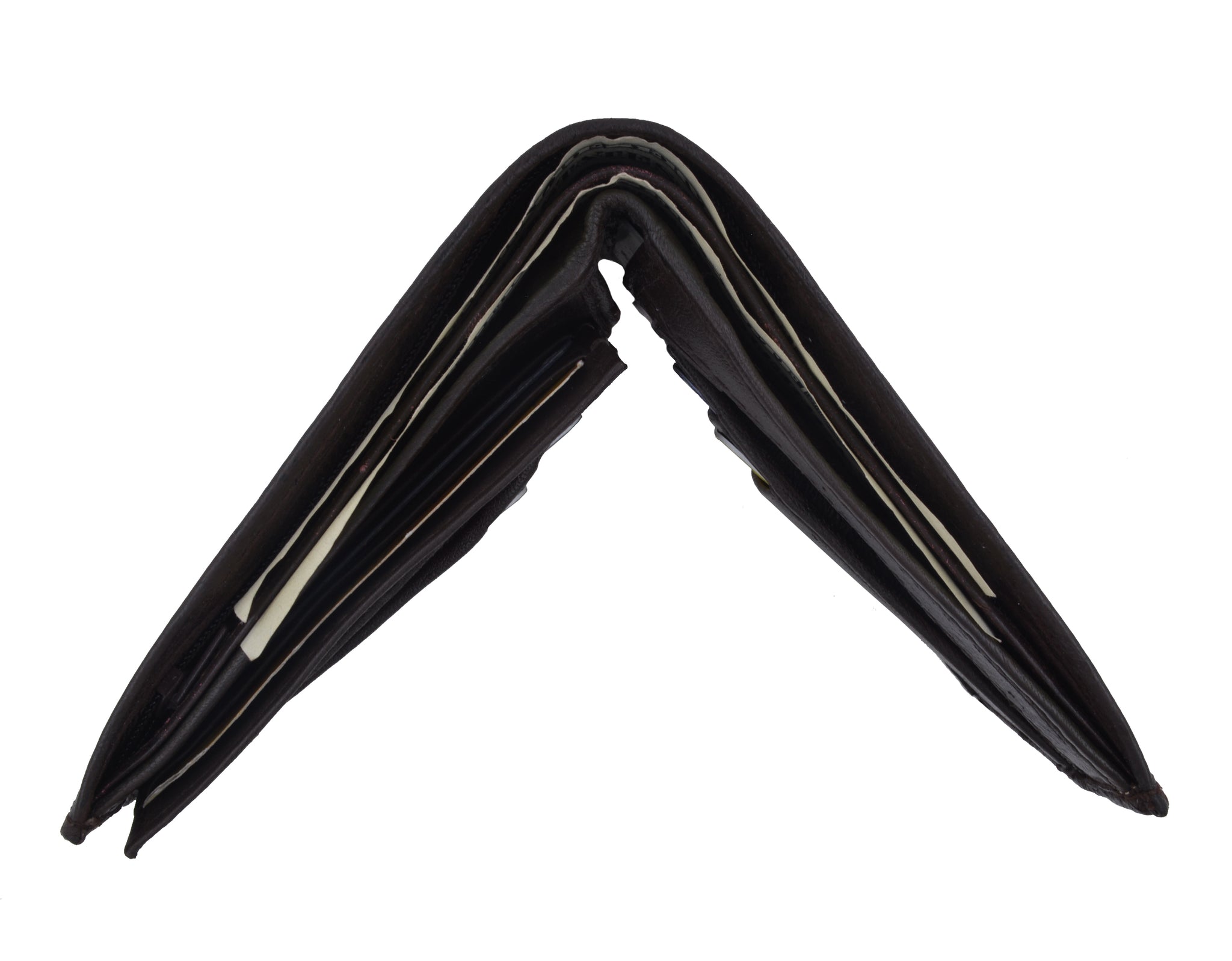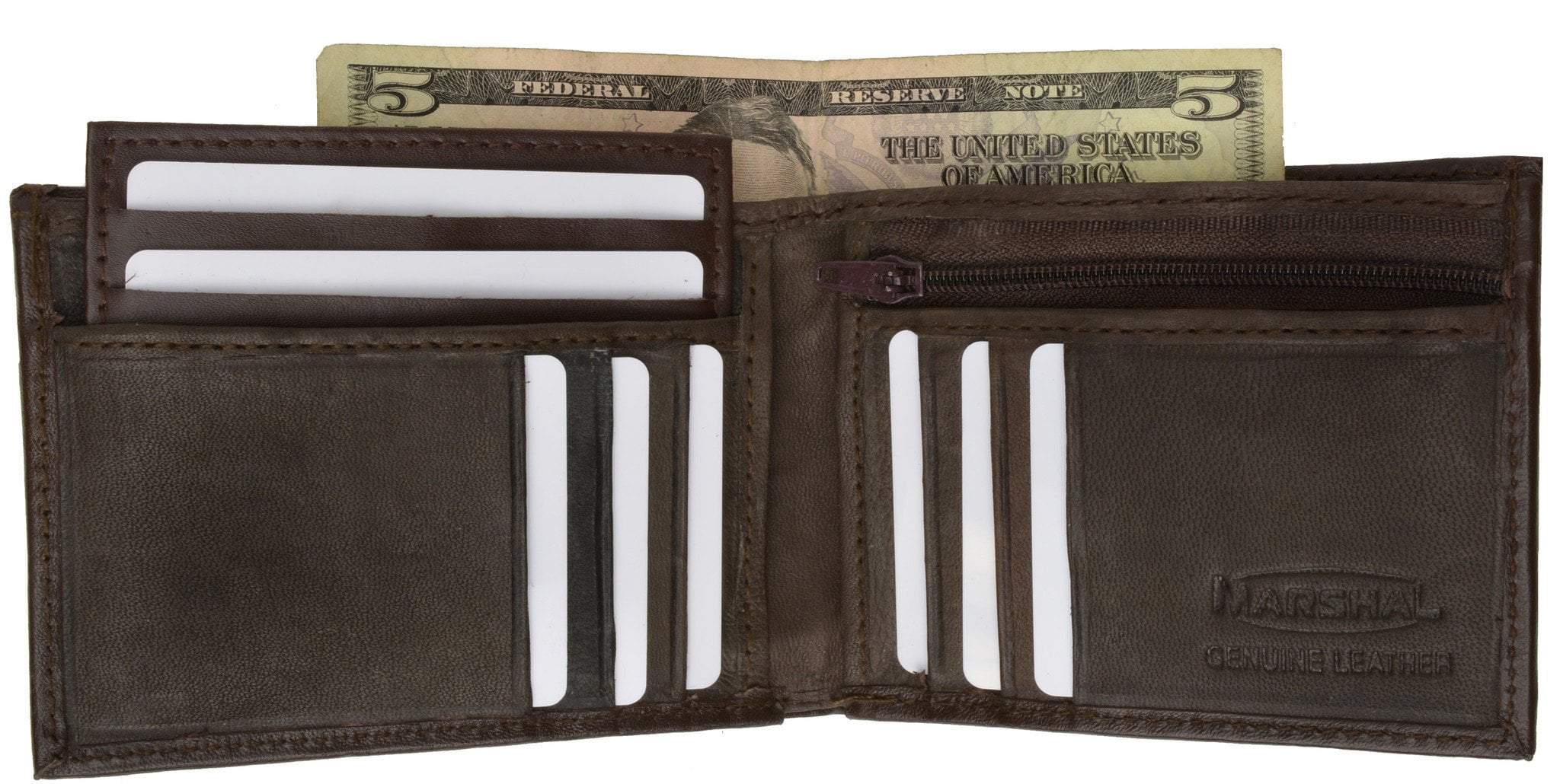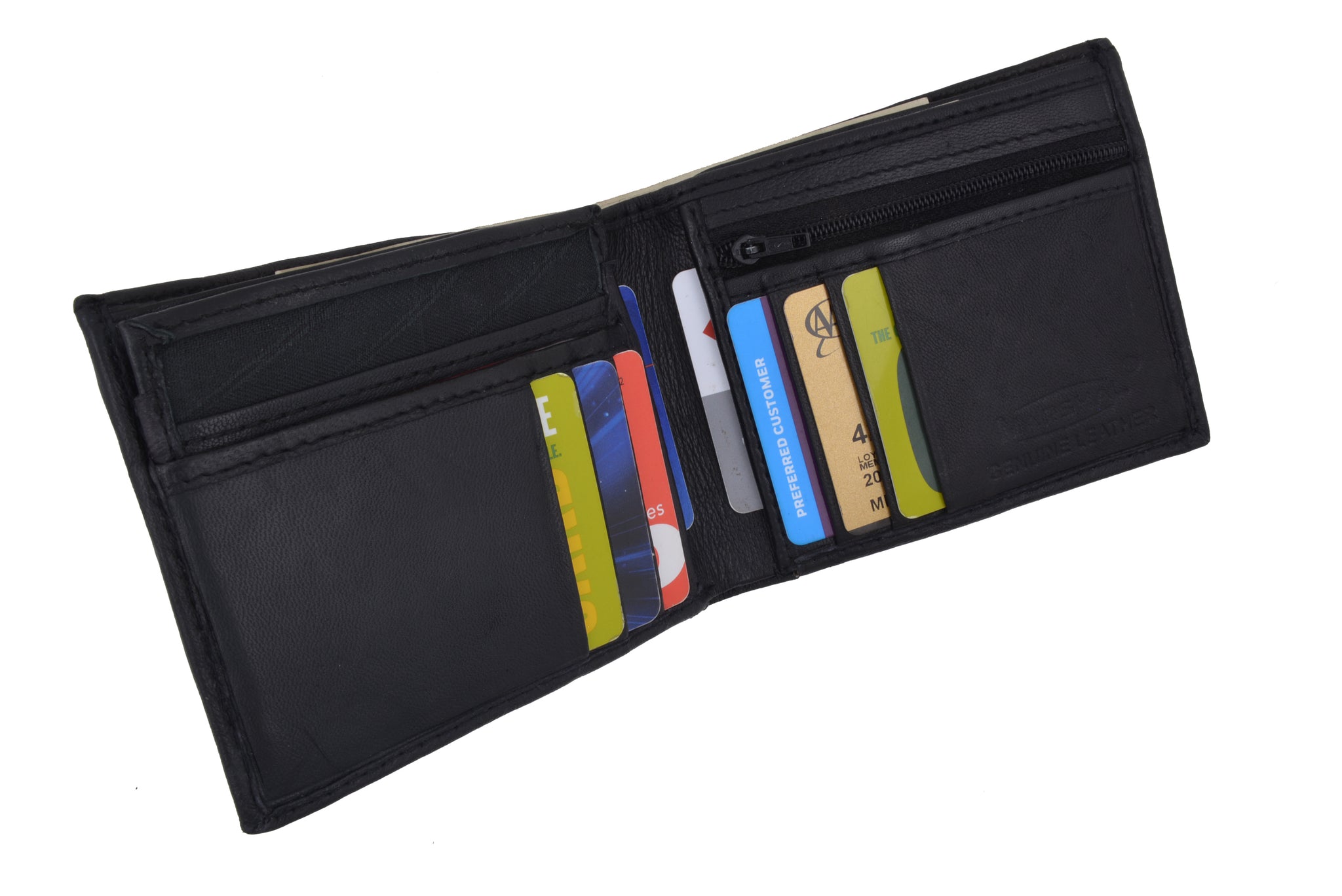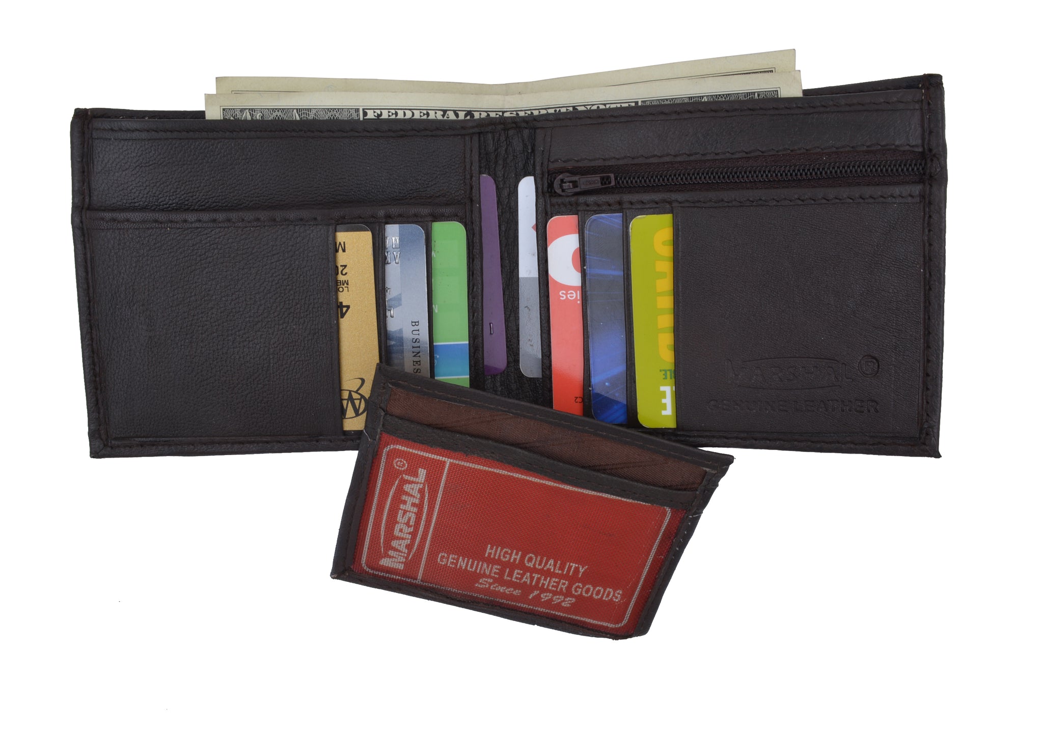 Men's genuine leather bi-fold wallet 9 credit card slots, currency compartment with a divider and a...