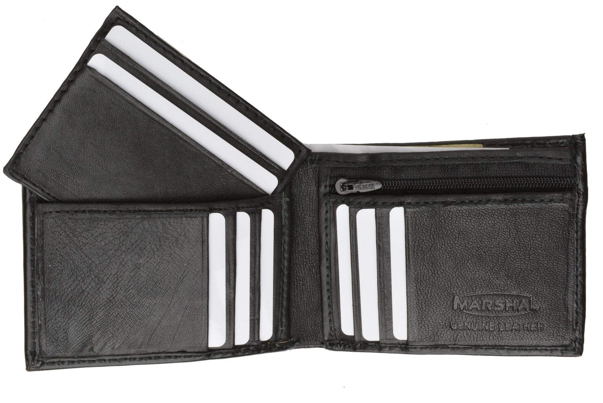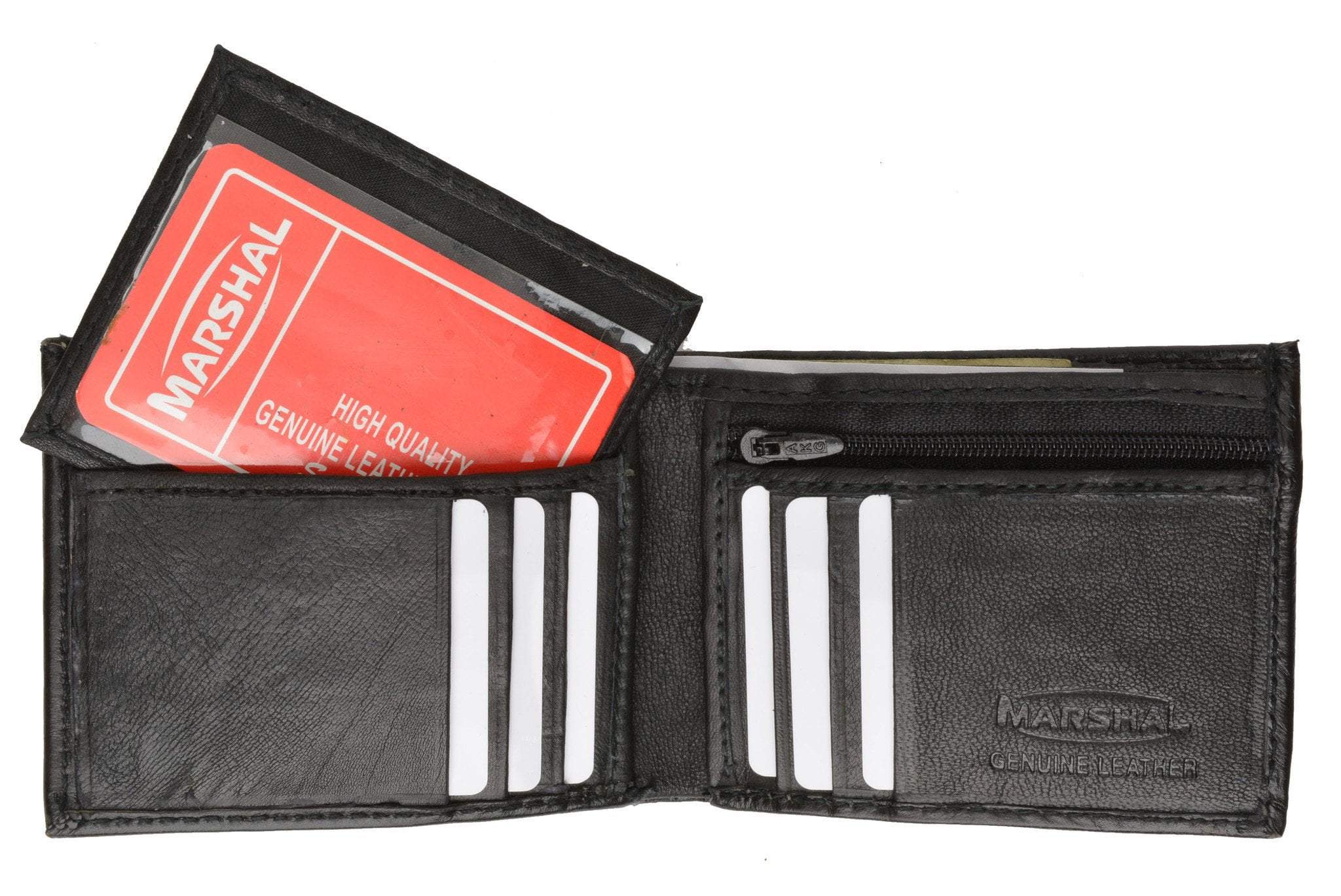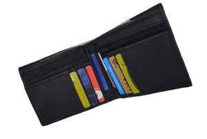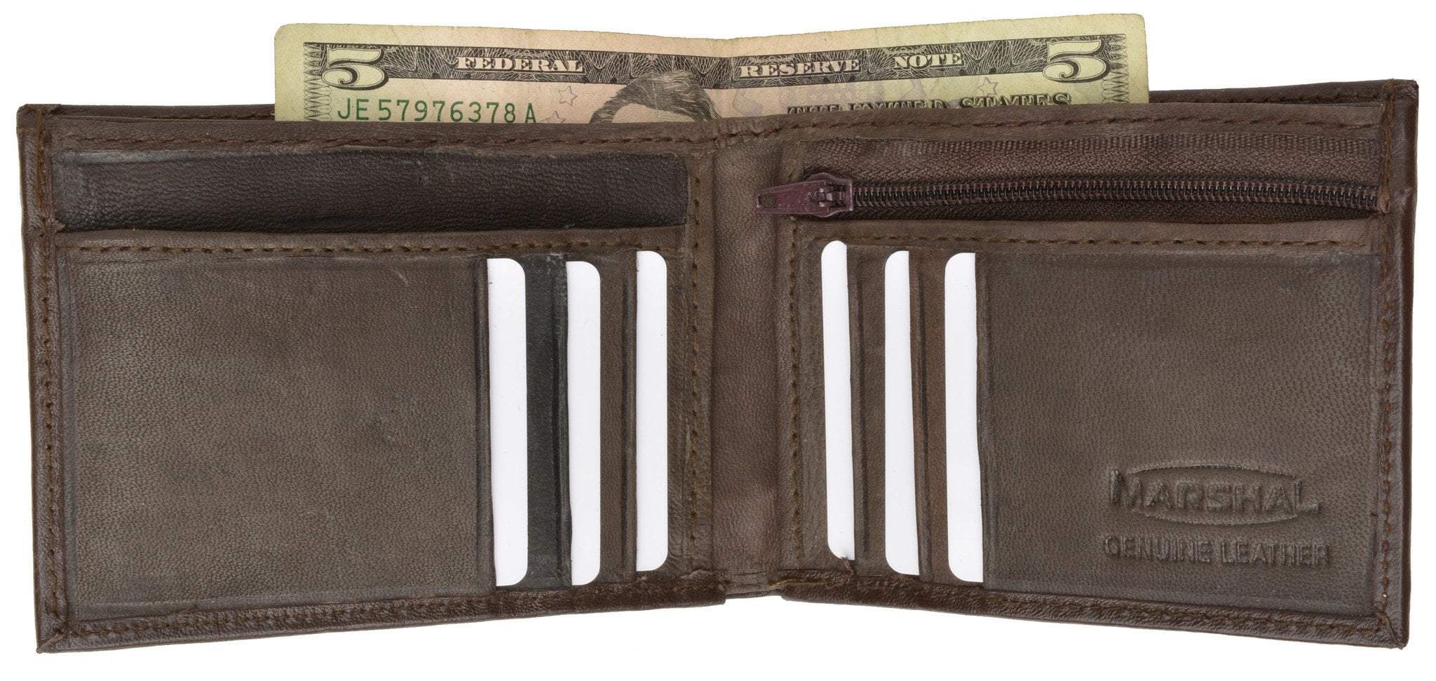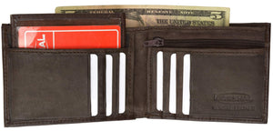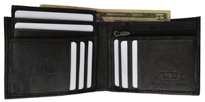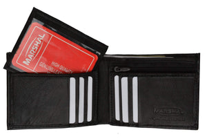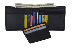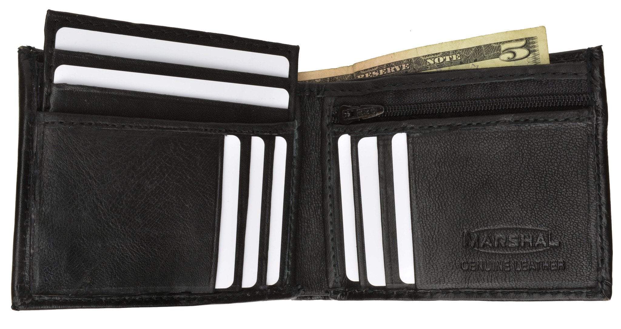Men's genuine leather bi-fold wallet 9 credit card slots, currency compartment with a divider and a...