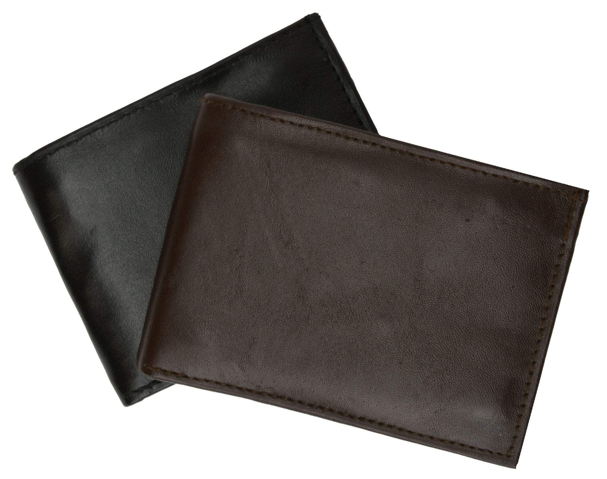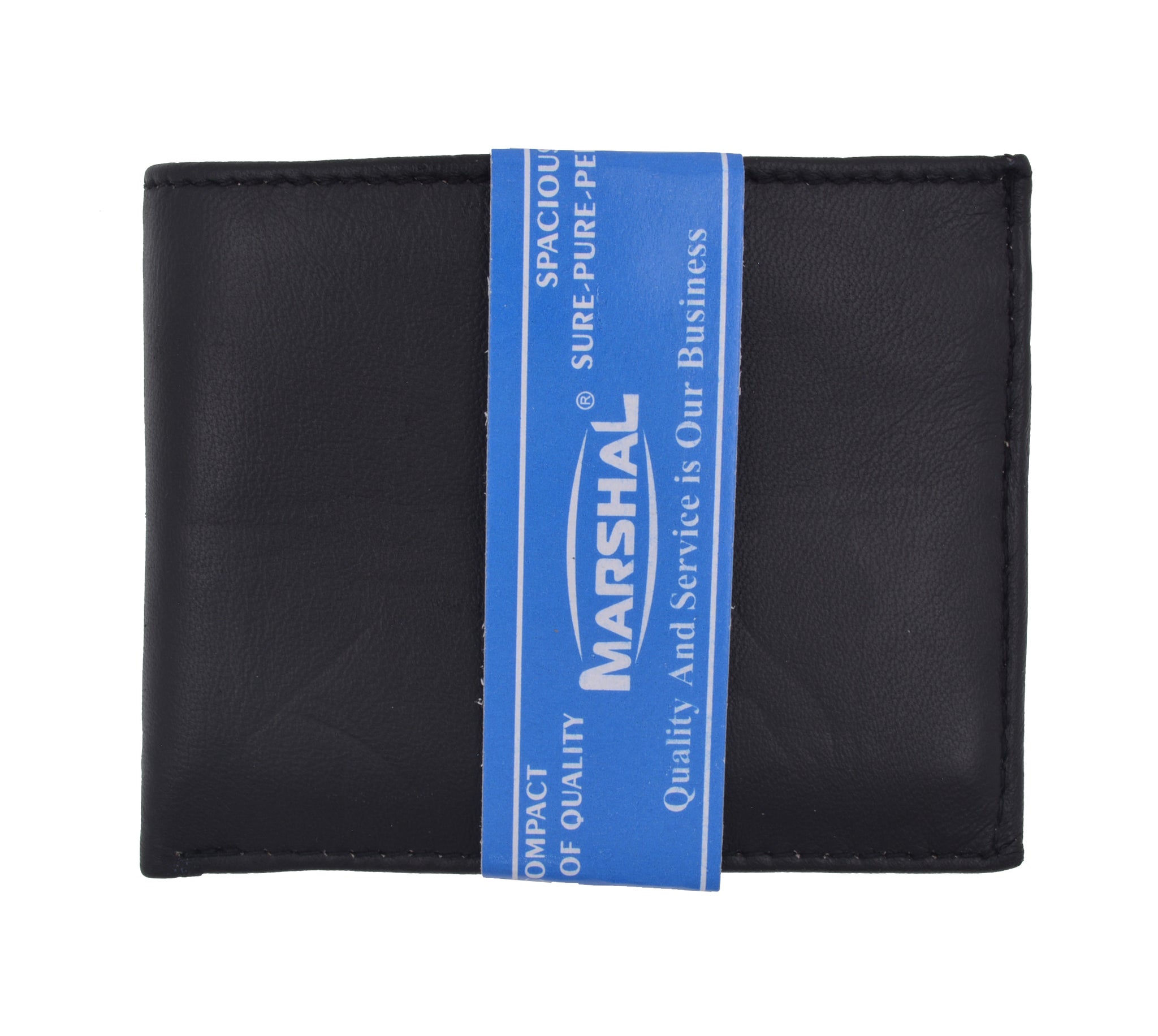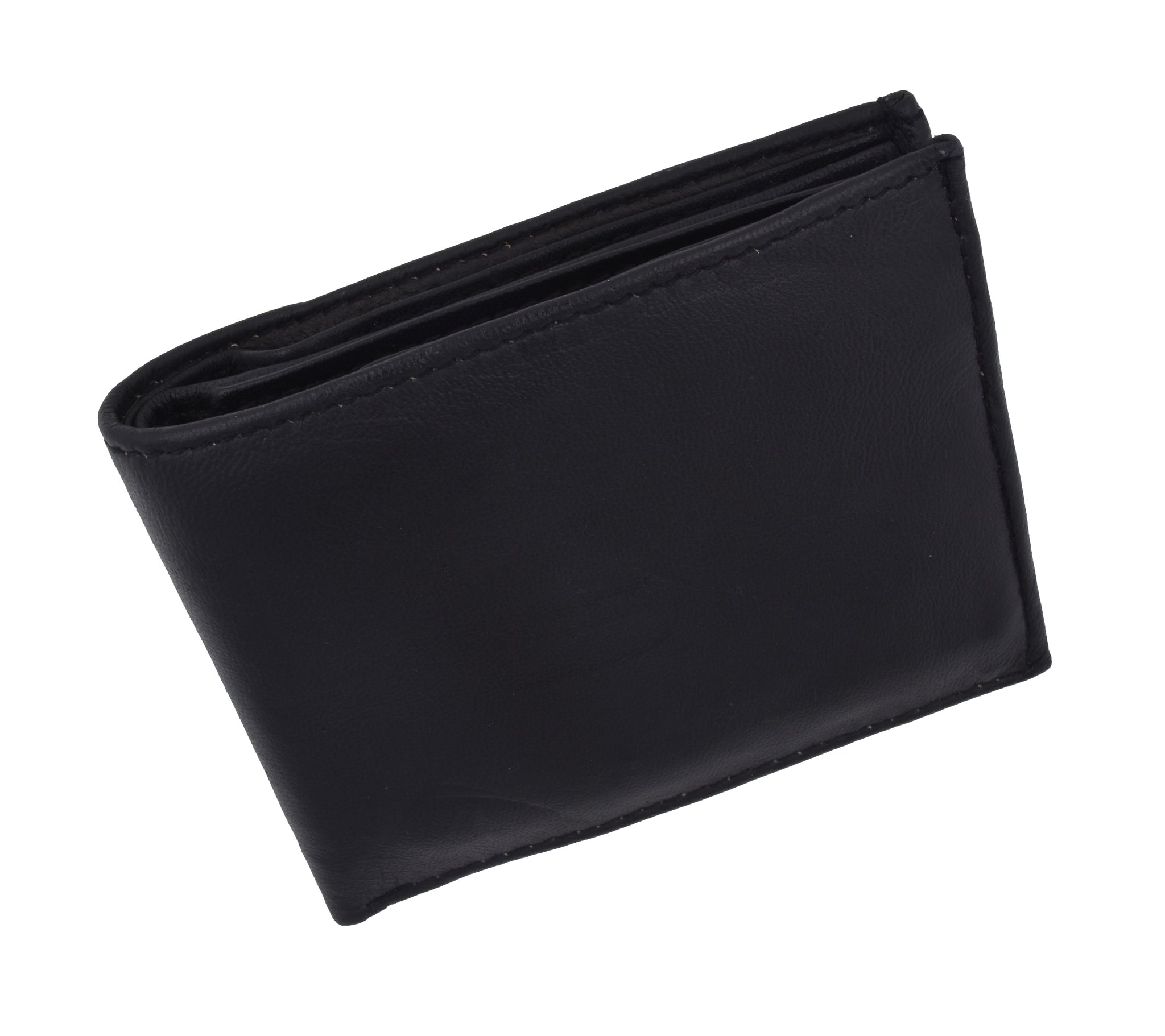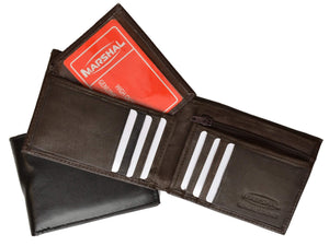 Men's wallet, crafted of fine lamb skin leather, features 6 credit cards slots, a Id...