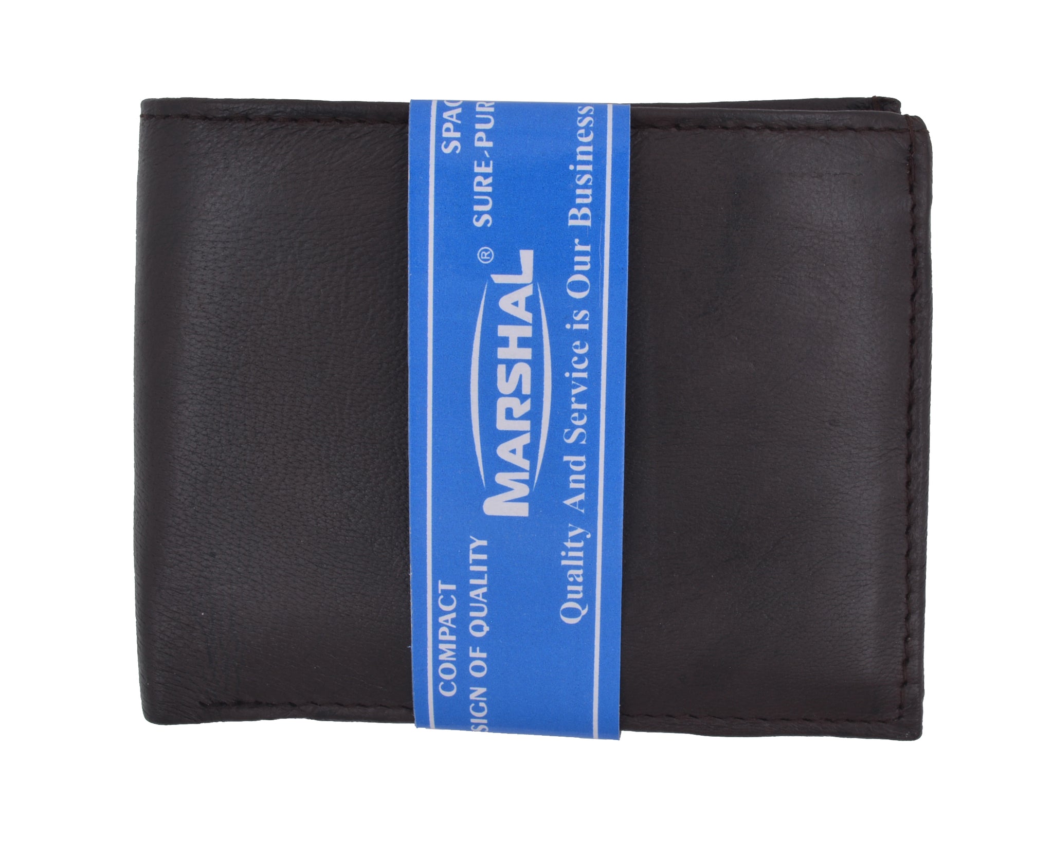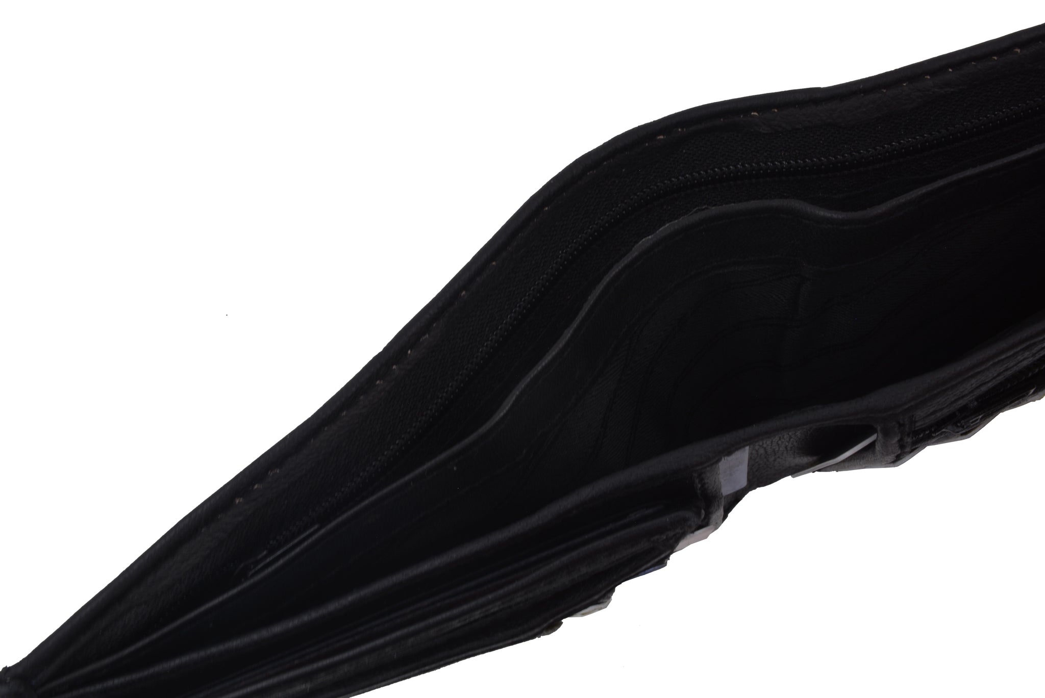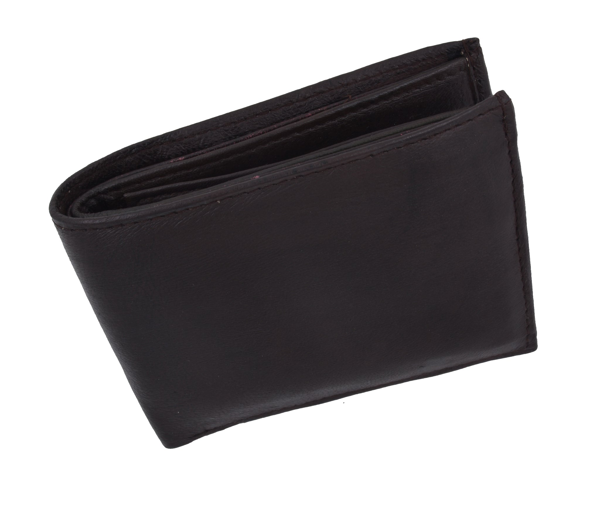 Men's wallet, crafted of fine lamb skin leather, features 6 credit cards slots, a Id...