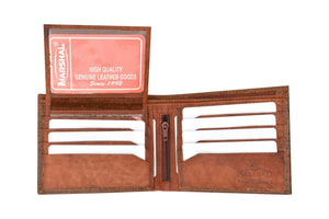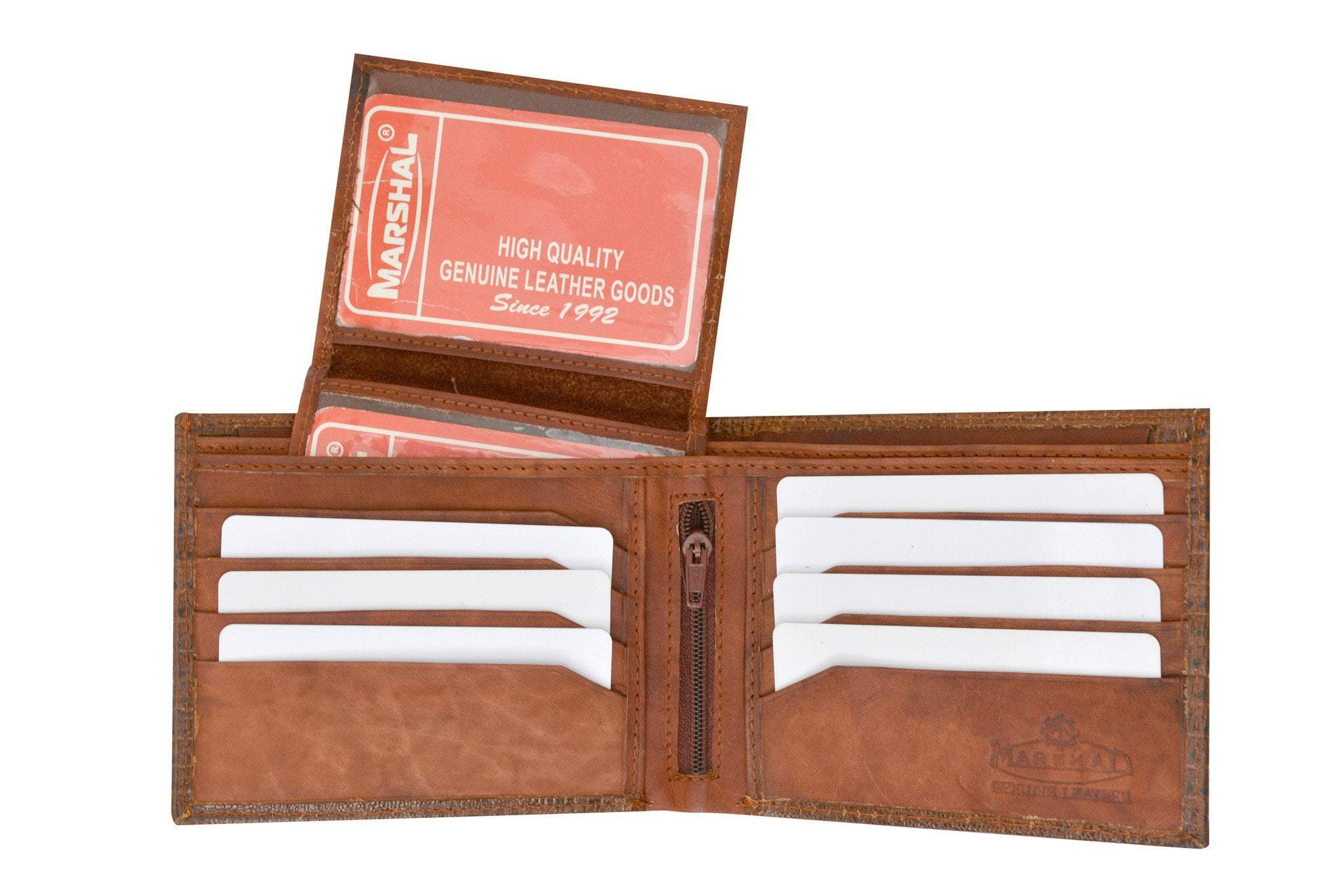 Men's genuine leather bi-fold wallet 9 credit card slots, currency compartment with a divider and a...