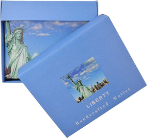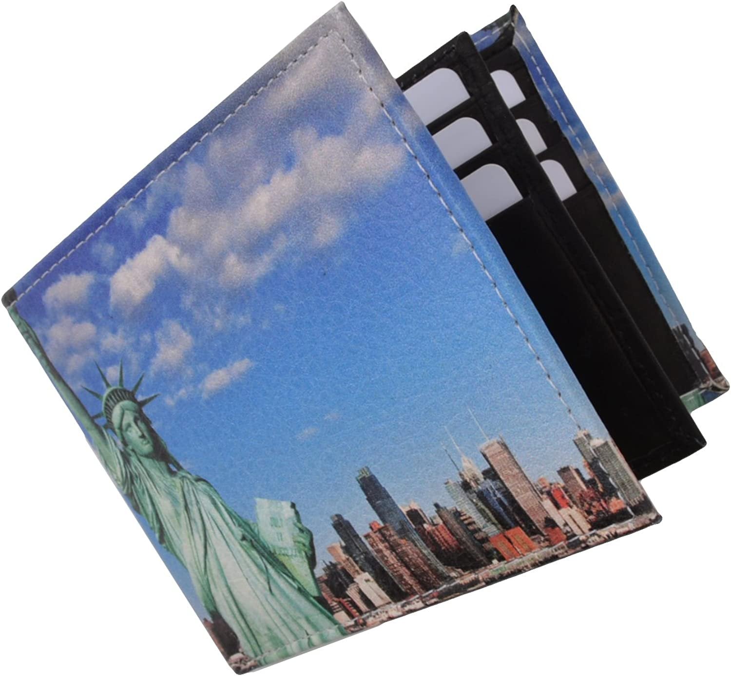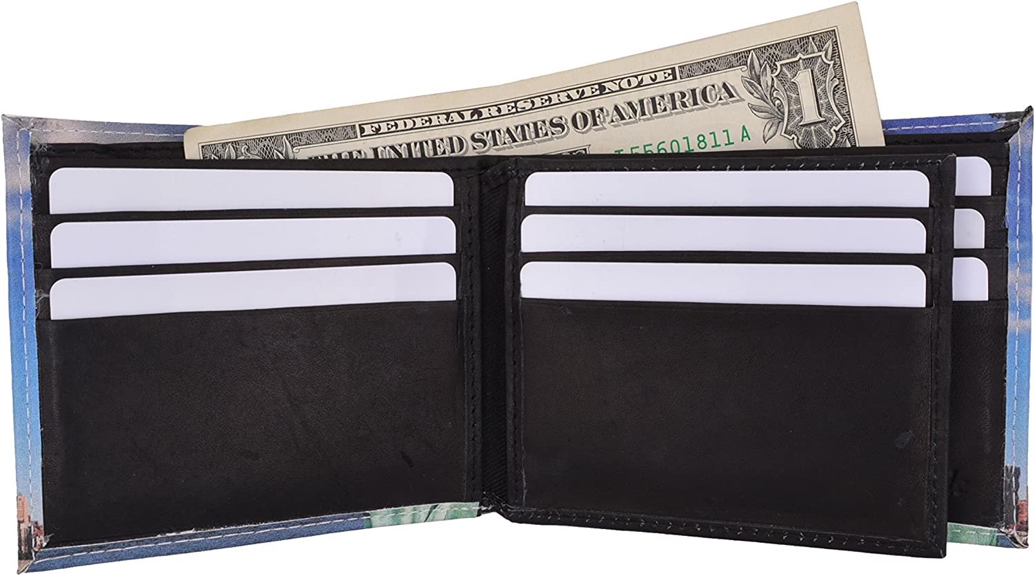 Statue of Liberty Genuine Leather Men's Bifold Wallet Multi Card ID Center Flap