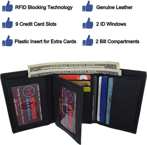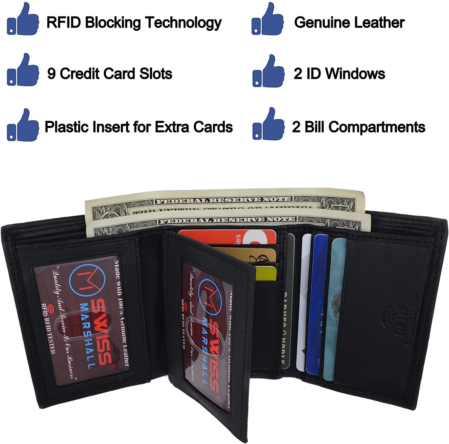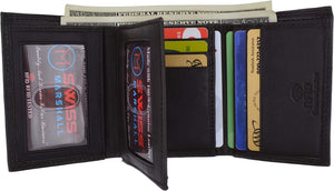 Swiss Marshall Men's RFID Blocking Premium Leather Classic Trifold Wallet