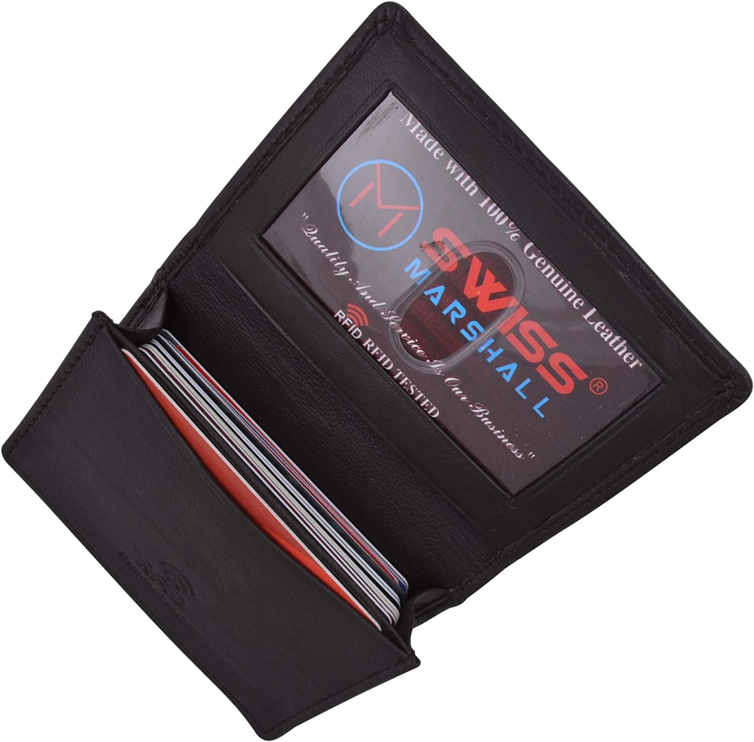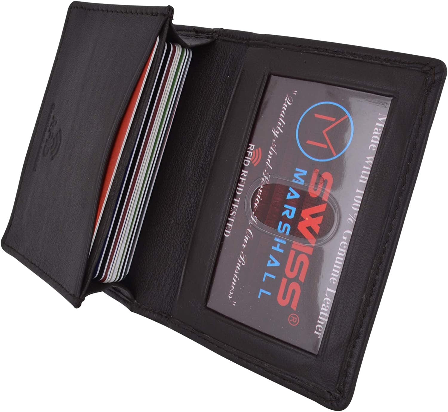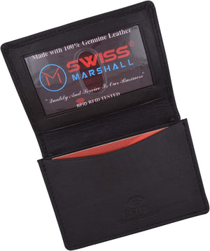 Swiss Marshall Men's RFID Blocking Premium Leather Expandable Small Credit Card ID Business Card Holder Wallet