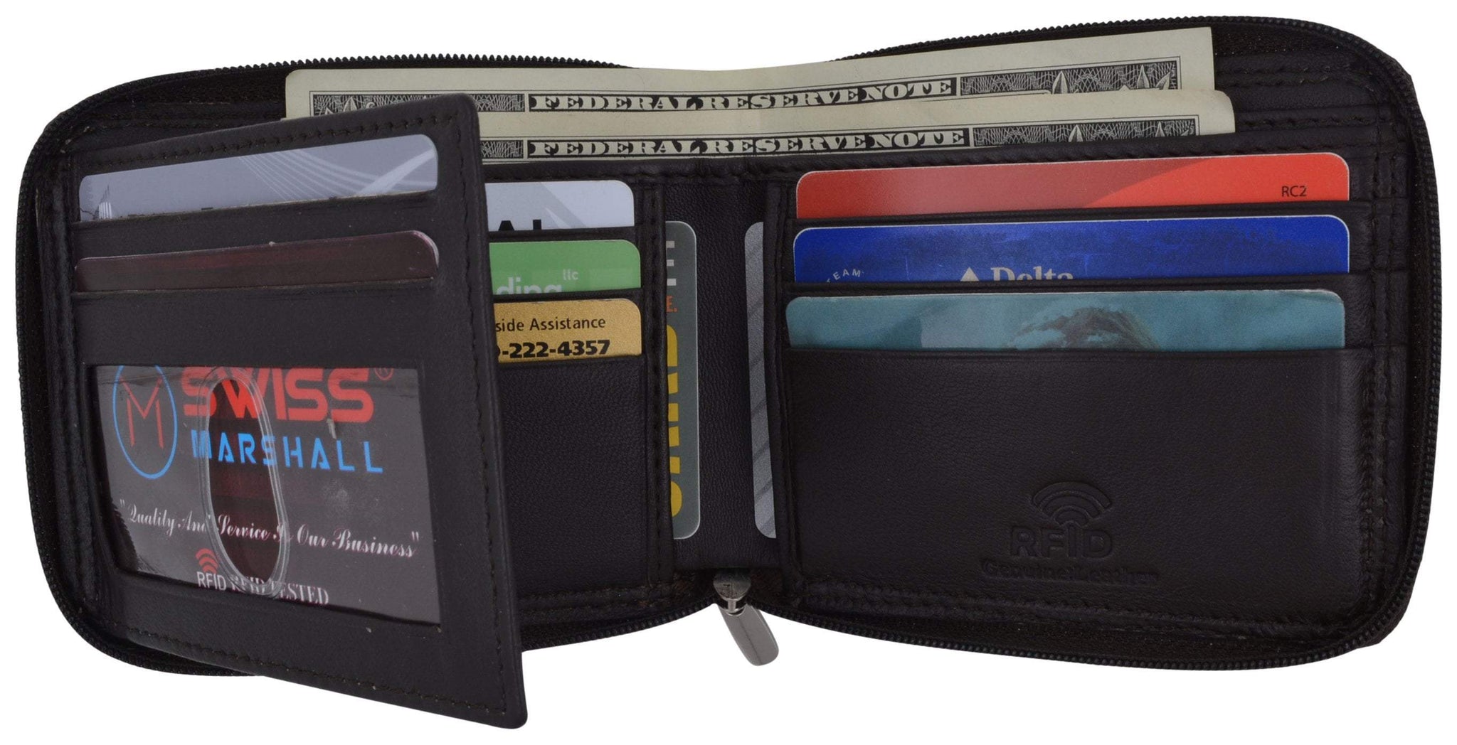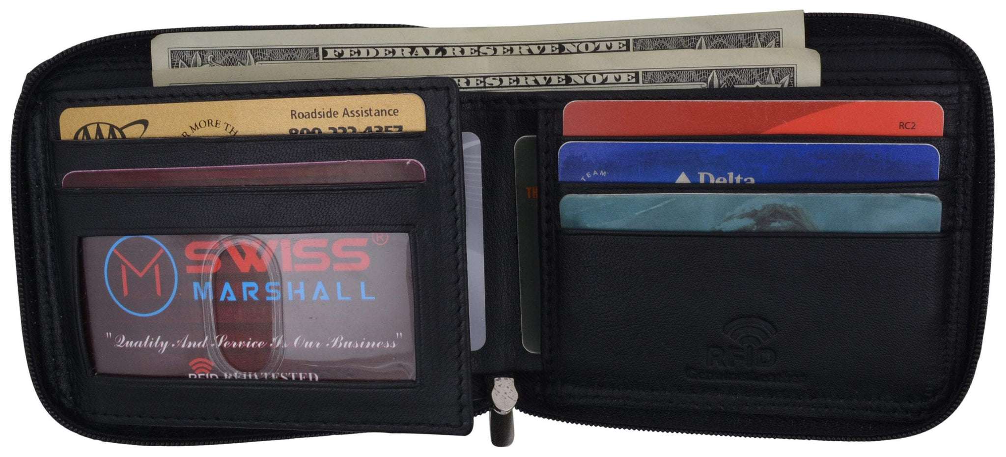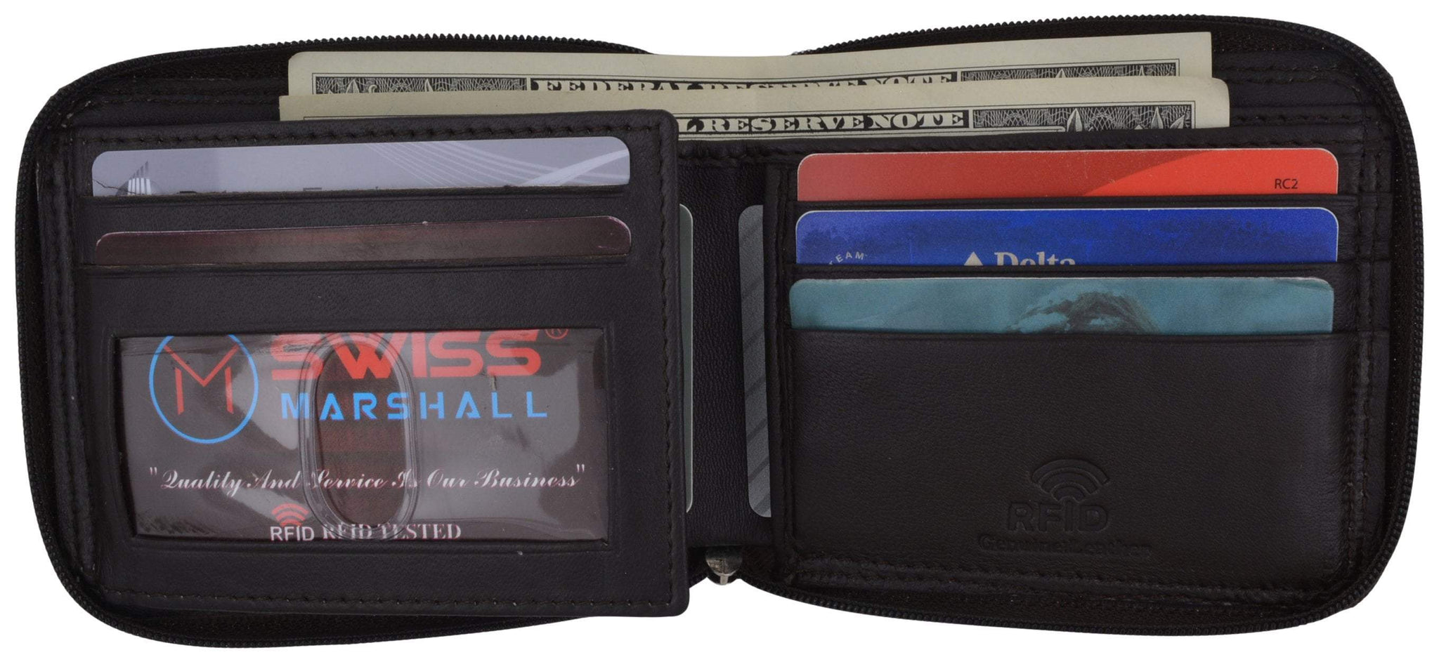 Category: bifold wallet, RFID, Swiss Marshall, wallets for men's, zip-around wallet