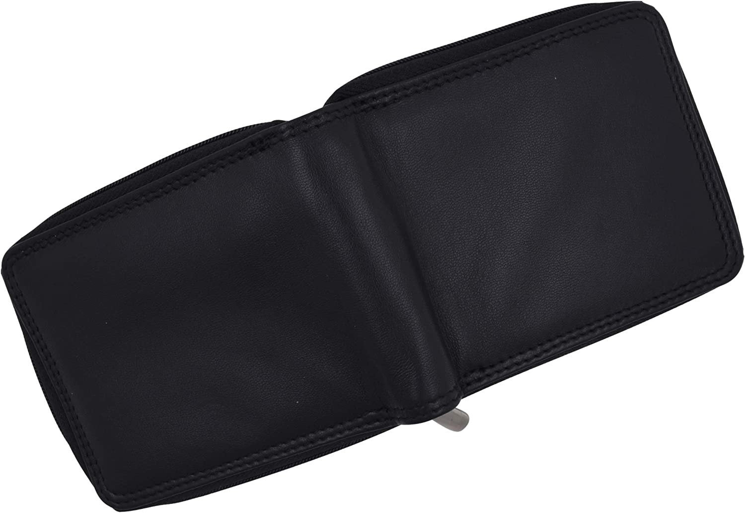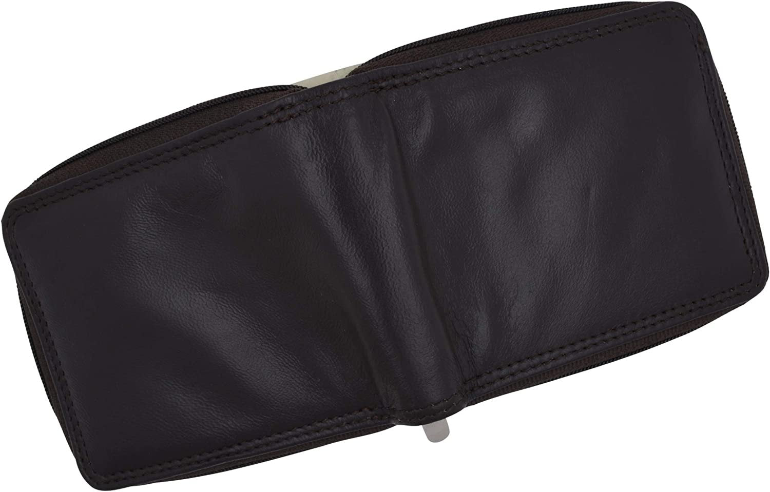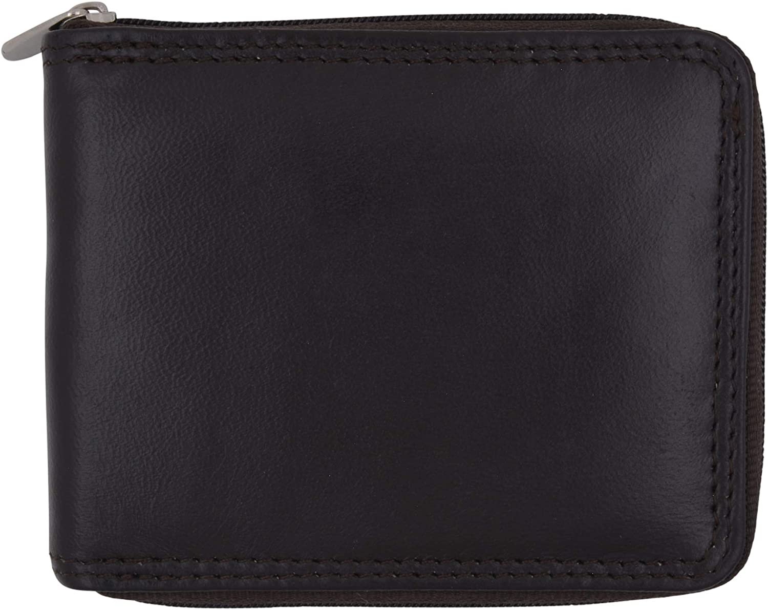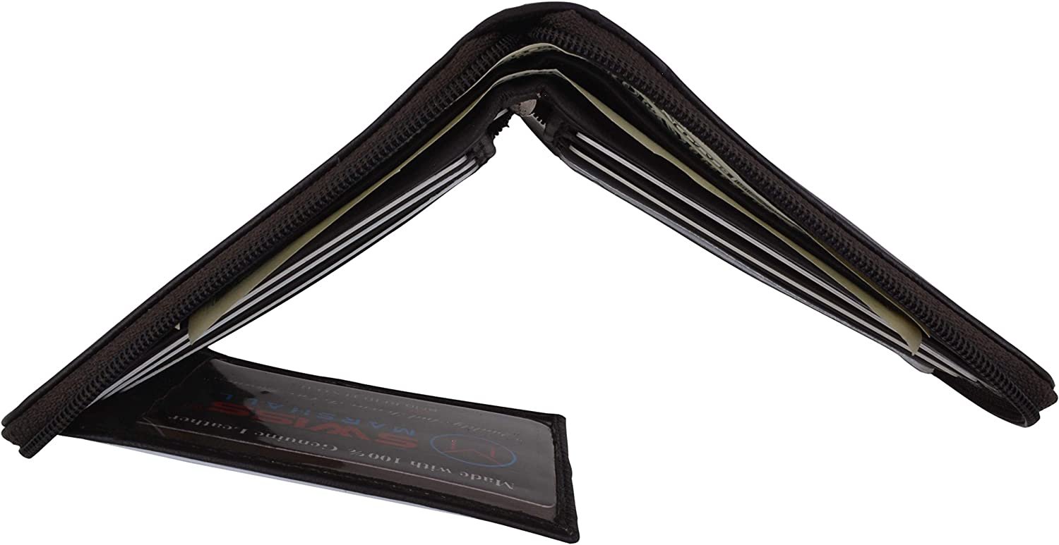 Swiss Marshall Men's Zipper RFID Blocking Premium Leather Zip-Around ID Bifold Wallet (Brown)