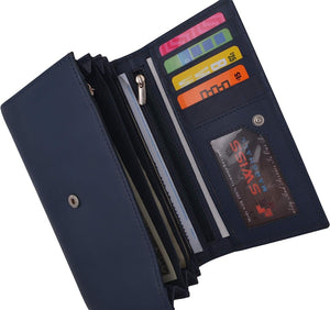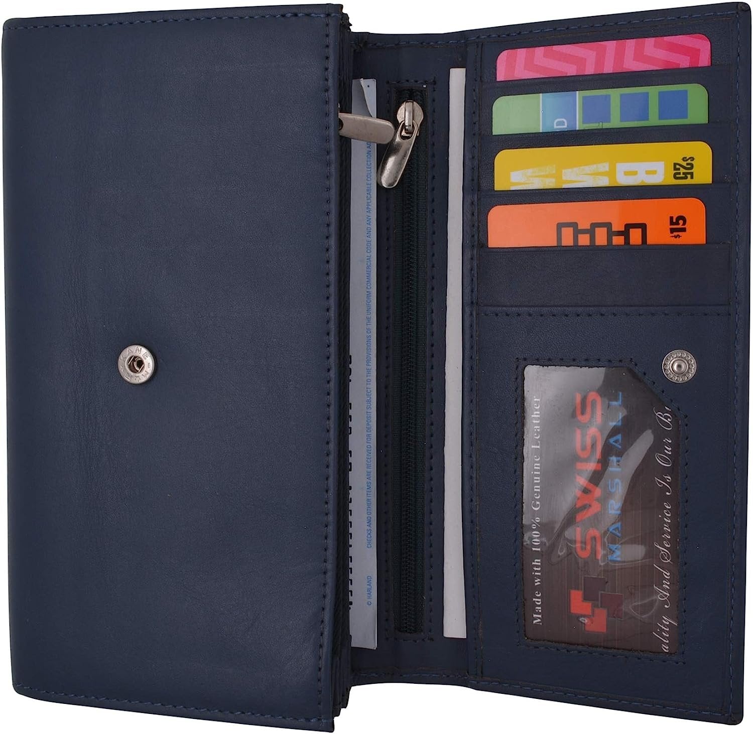 Swiss Marshall Women RFID Blocking Real Leather Wallet - Clutch Checkbook Wallet for Women