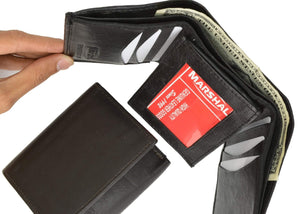 Men's genuine leather bi-fold wallet 9 credit card slots, currency compartment with a divider and a...