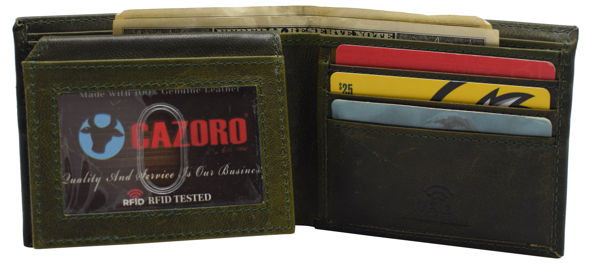Category: bifold wallet, Cazoro, Genuine Leather, Mens wallet, RFID